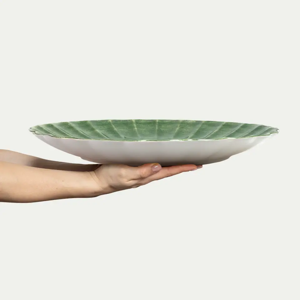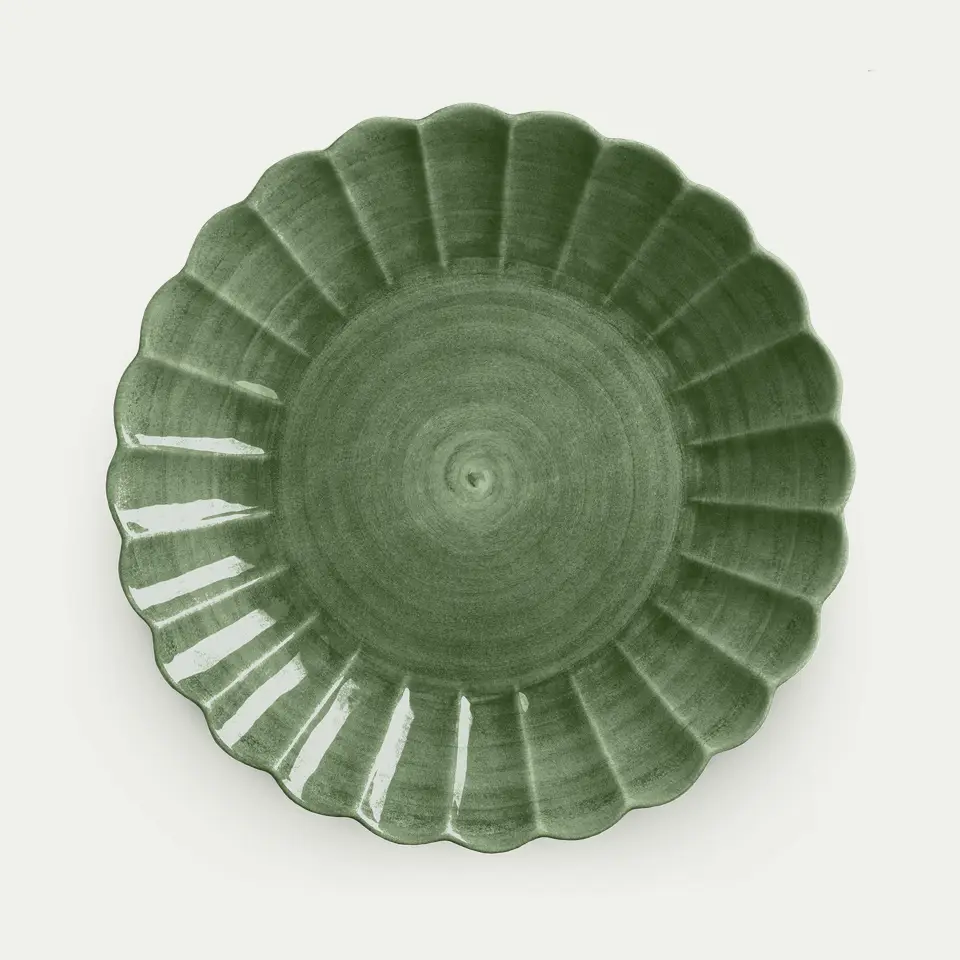 Ett generöst serveringsfat, med den karakteristiska vågformen från Oyster-kollektionen inspirerad av havet. Perfekt för större sallader, frukt eller bröd. Kombinera med mindre delar från samma kollektion, eller mixa med produkter från kollektionerna Basic och Lace för en personlig och uttrycksfull stil. Den rymliga storleken och romantiska formen gör det till en uppskattad gåva vid bröllop, födelsedag eller andra speciella tillfällen.
