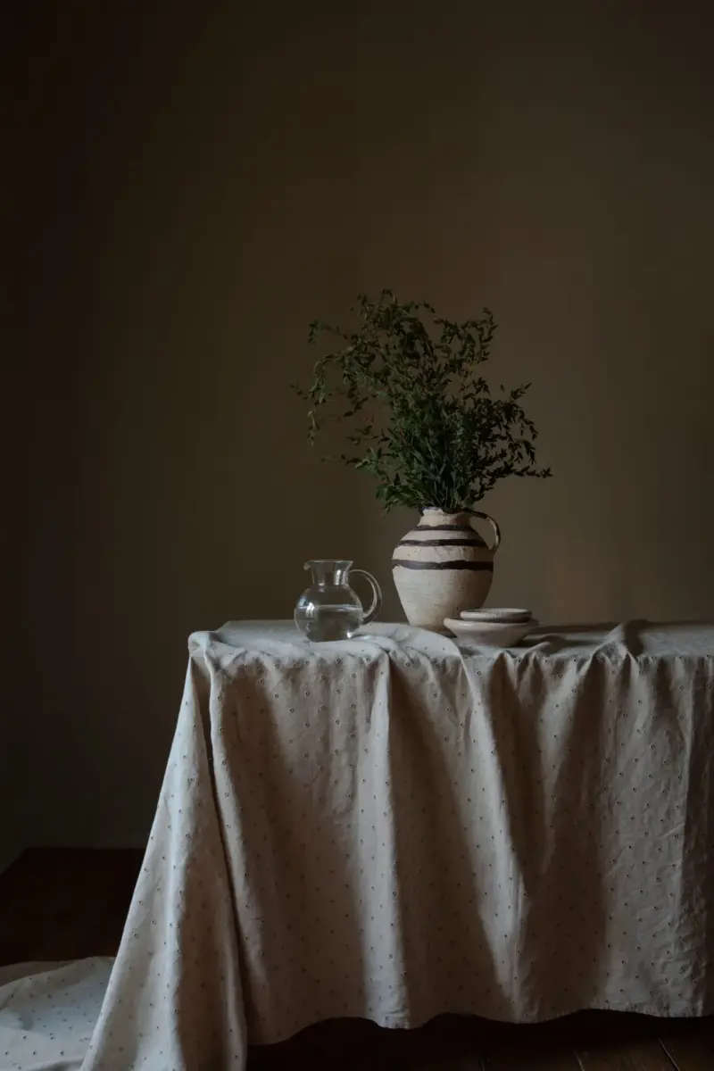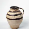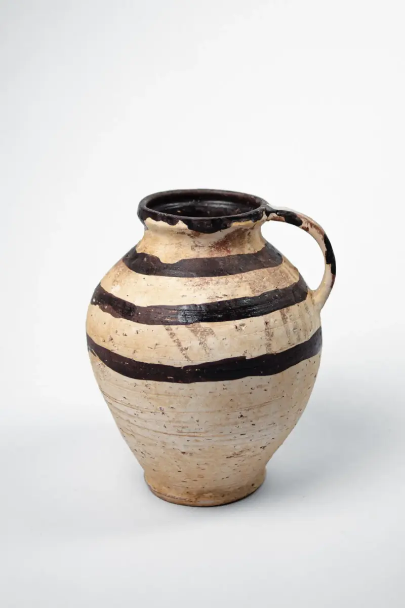 Dekorativt keramikkrus med randiga detaljer, handgjort och unikt i varje exemplar.