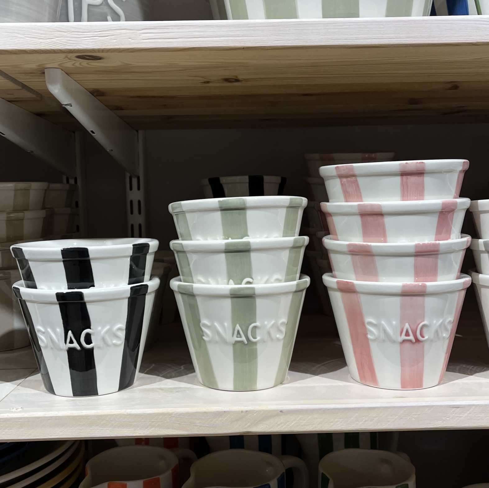 Servera snacks med färg och elegans med Brukas snacksskålar! Finns i flera härliga färger och mönster – både randiga och enfärgade – och passar perfekt till nötter, chips eller små tilltugg.