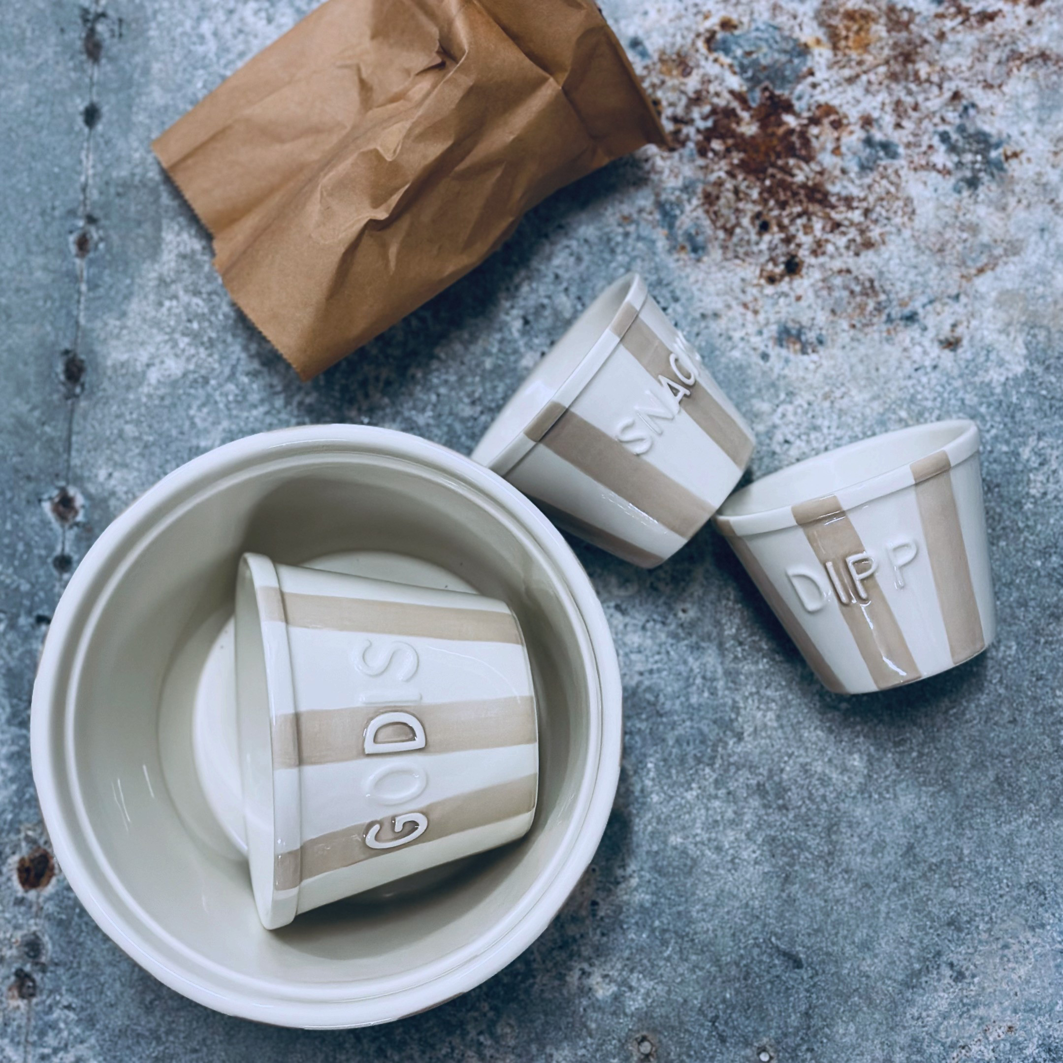 Brukas chipsskålar – färgglada favoriter för alla tillfällen. Finns i flera härliga färger och mönster – både randiga och enfärgade – så att du kan mixa och matcha precis som du vill. Perfekta för chips, godis eller frukt, och lika fina till vardag som fest.