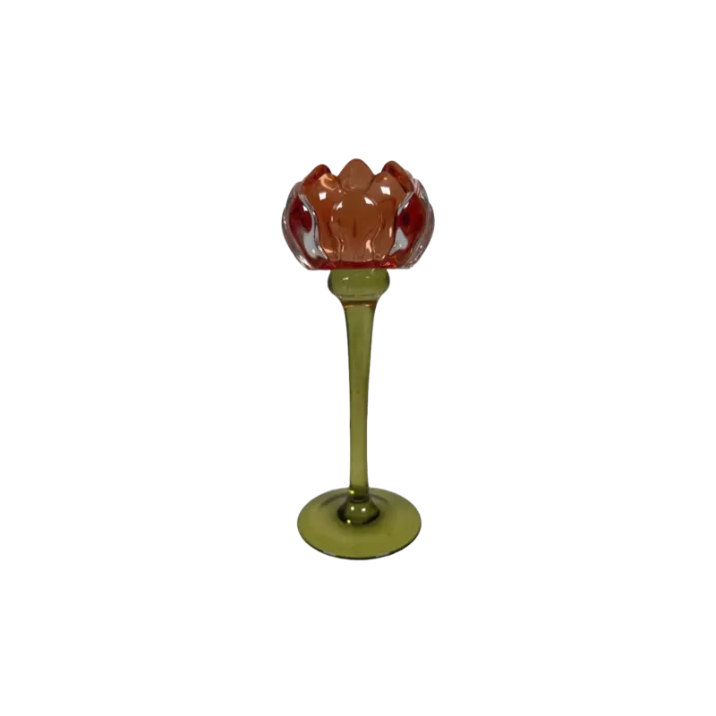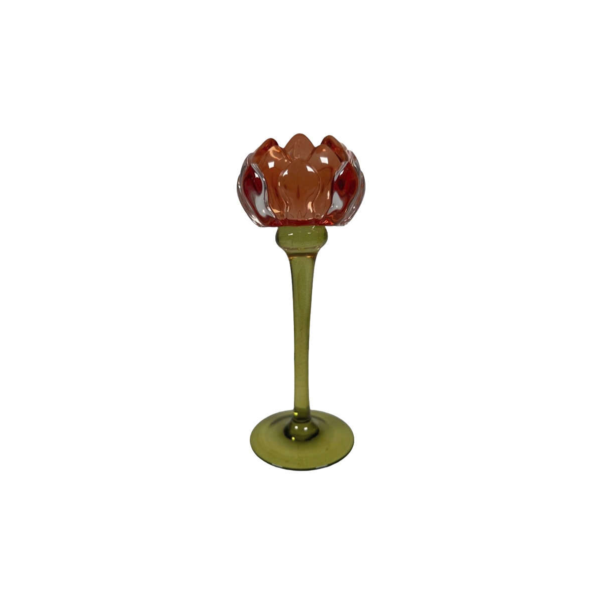 Ljuslykta med form av en blomma, ger ett vackert sken när den är tänd. Glas med färgfinish: vår rekommenderar är att handdiska i max 30 grader, torkas direkt efteråt.