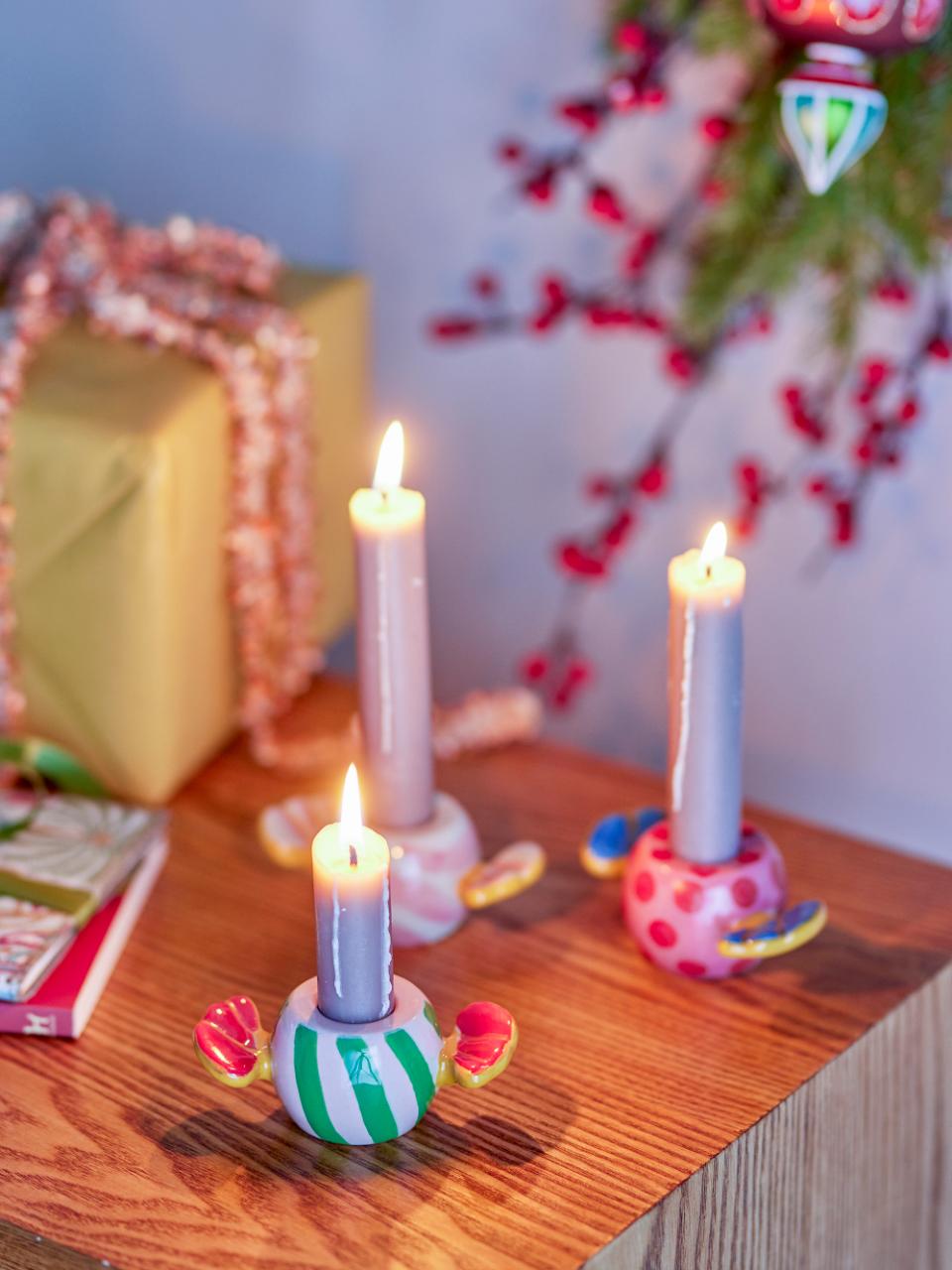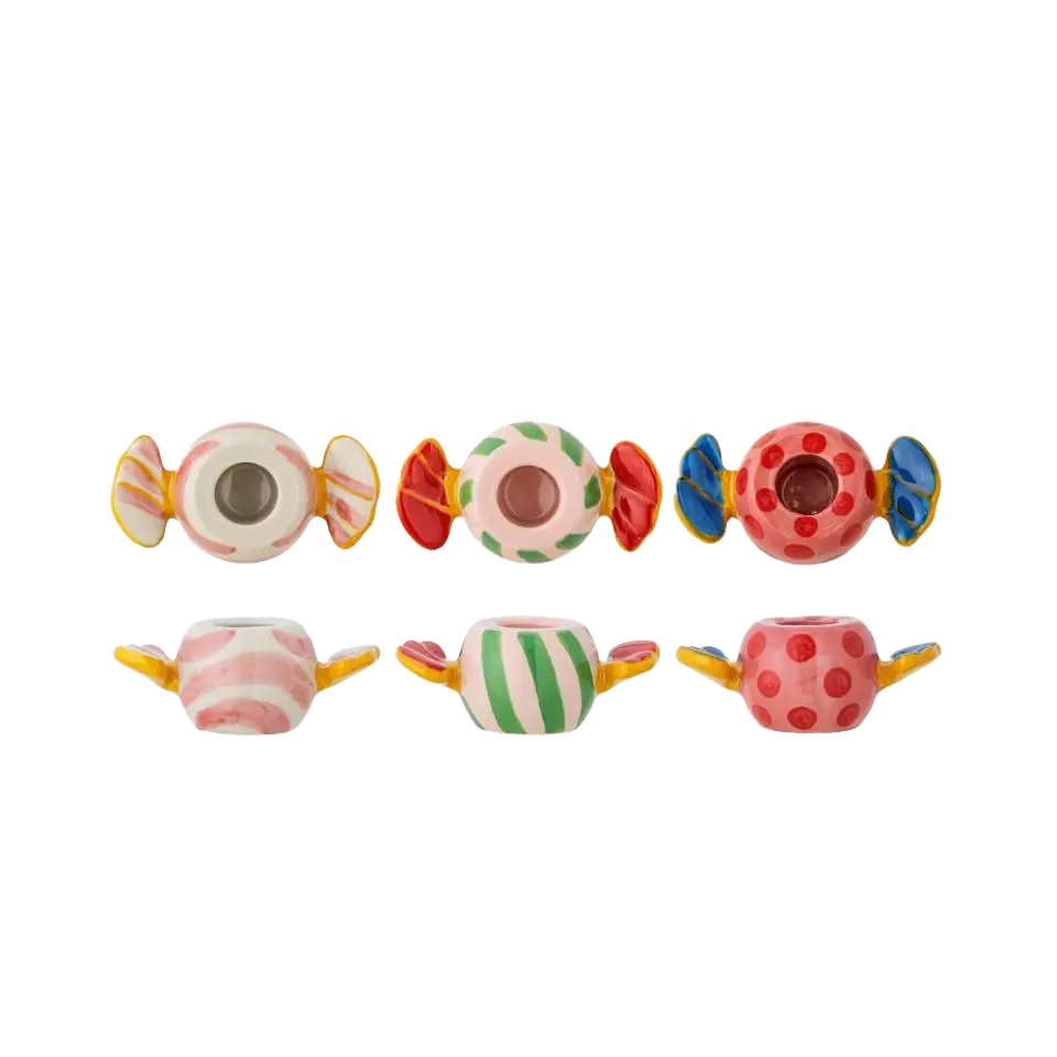 The Caramella Candle Holder by Bloomingville adds a playful and colorful touch to your home decor. The set includes three candle holders, each with a unique, hand-painted design in fresh, bright colors. These candle holders create a warm and welcoming vibe, making them ideal for both everyday use and special occasions