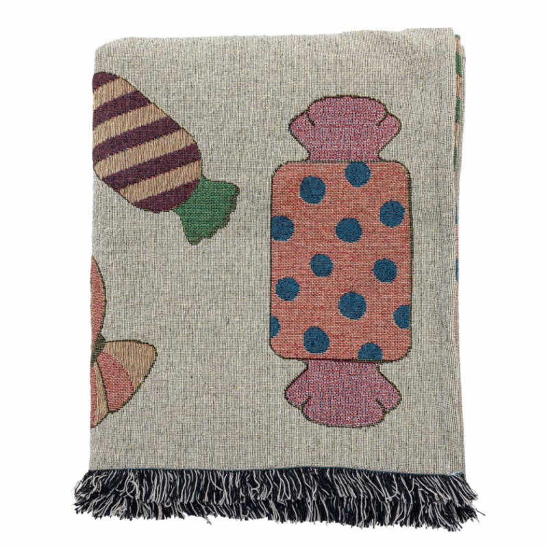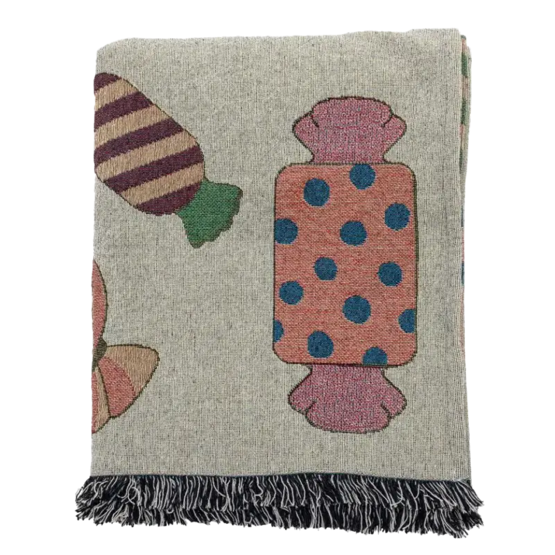 The Caramella Throw by Bloomingville is made by recycled cotton and features a woven candy pattern. Red tassels at the corners add a charming touch, while the jacquard effect on the back provides texture. Perfect as a decorative and functional element for the sofa, armchair, or bedroom.