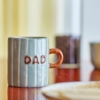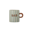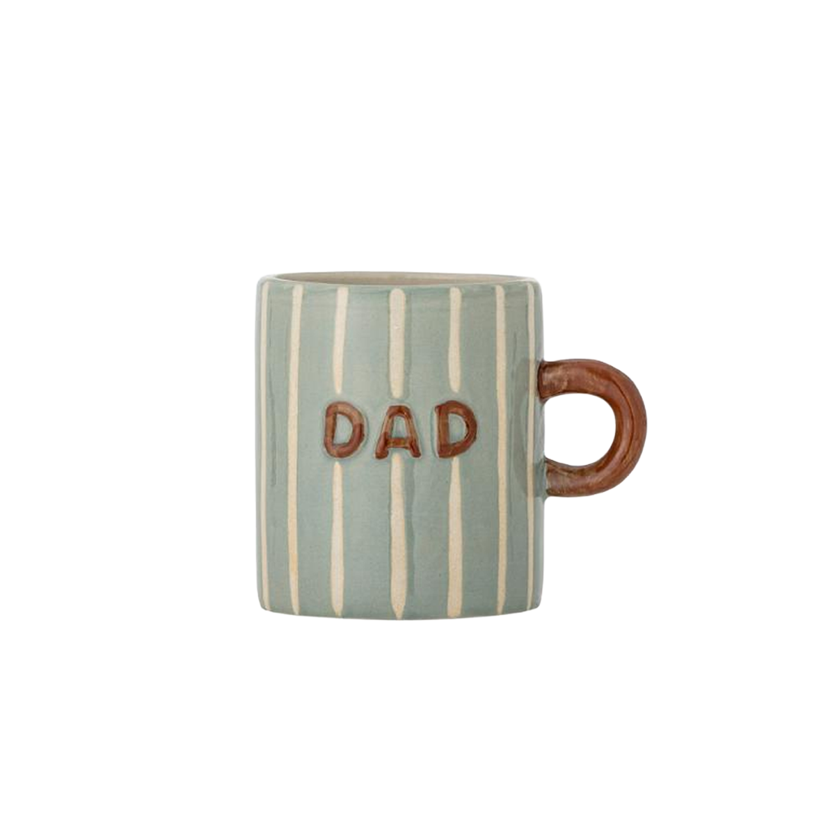 Cherish-muggen från Bloomingville är tillverkad i stengods med en blank glasyr och vertikala cremefärgade ränder. Muggen är dekorerad med ordet “Dad” på ena sidan och “Love” på den andra, och har handmålade detaljer som ger designen djup. Små variationer i mönster och färgintensitet kan förekomma, vilket gör varje mugg unik.