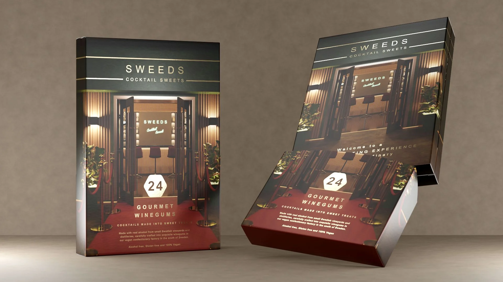 SWEEDS Julkalender består av alla våra favoritsmaker förpackade i 23 provstorlekar med 3 bitar/15 gram i varje påse, plus 1 större provstorlek med 50 gram för den 24:e.