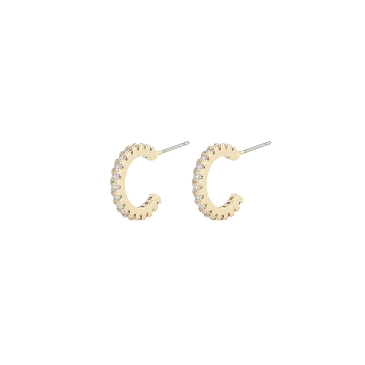 Clarissa ringörhängen, 12 mm i diameter, tillverkade av silver- eller guldpläterad mässing med stenar av cubic zirconia i olika färger.