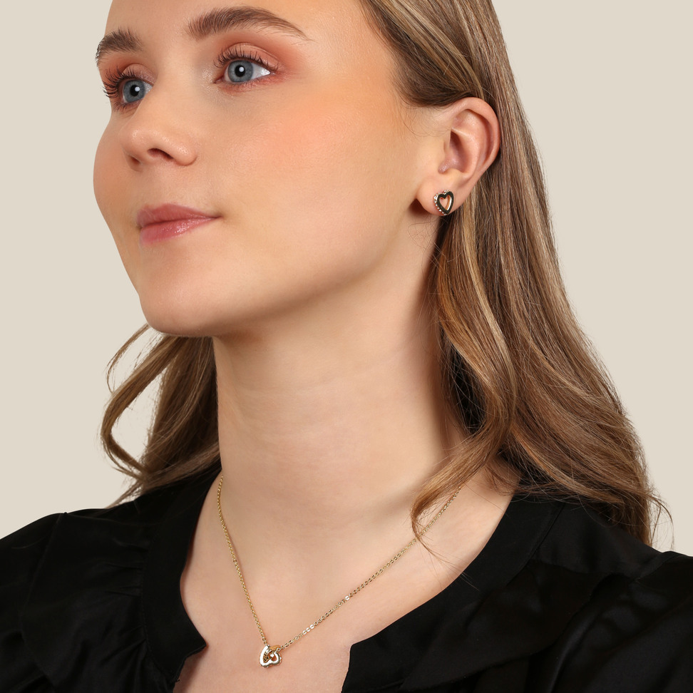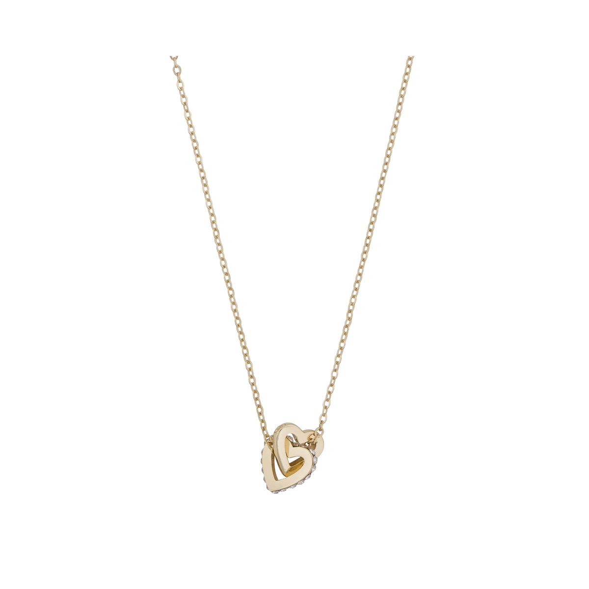 Kedjehalsband med två hjärtan som ärsammankopplade. Där det ena hjärtat är dekorerat med cubic zirconia stenar.Halsbandet har justerbara länkar.