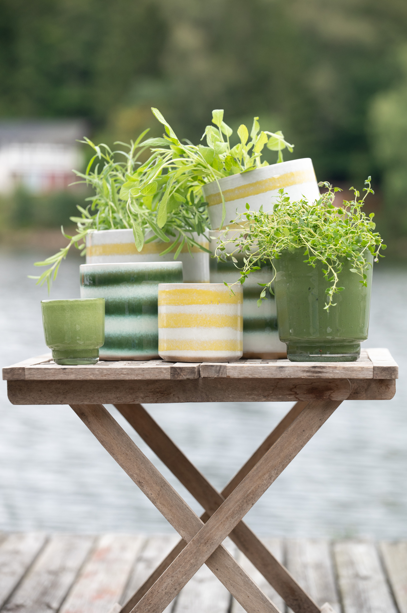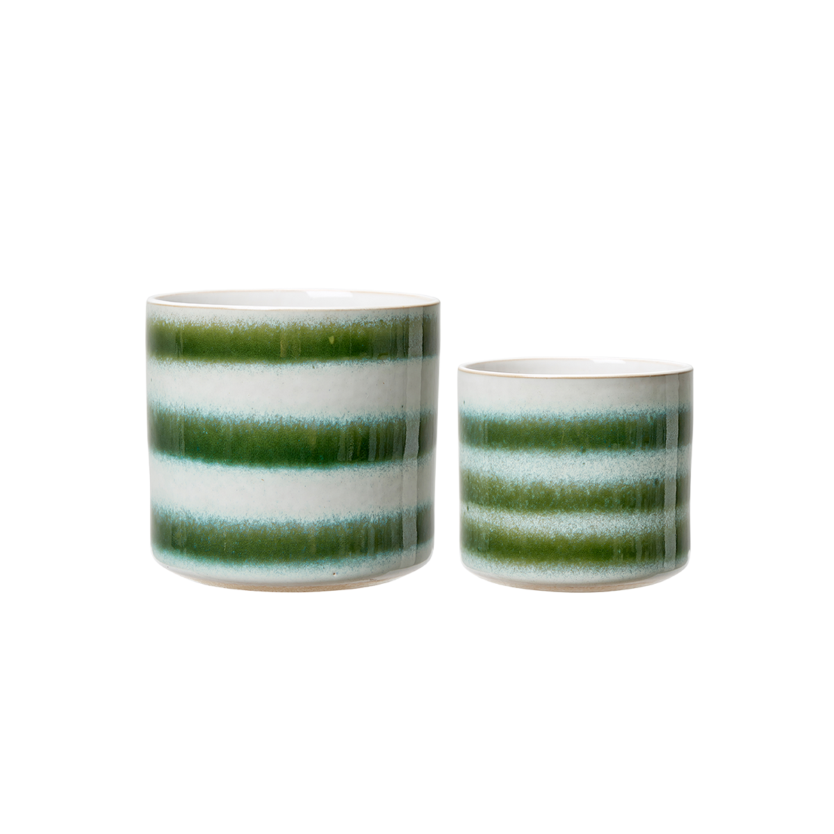 Cora är ett set med två stilrena krukor som passar perfekt i alla hem. Krukorna är tillverkade i porslin med en randig finish i grönt och vitt som ger en fräsch och elegant touch till dina växter och inredning.