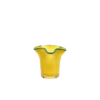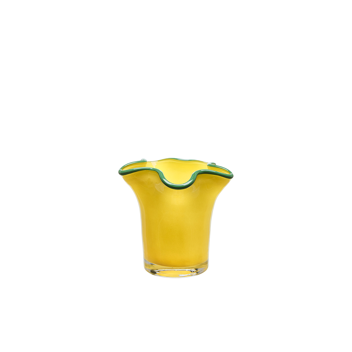 Gul ljuslykta med grön detalj och vågiga former. Finns att kombinera med matchande vas.