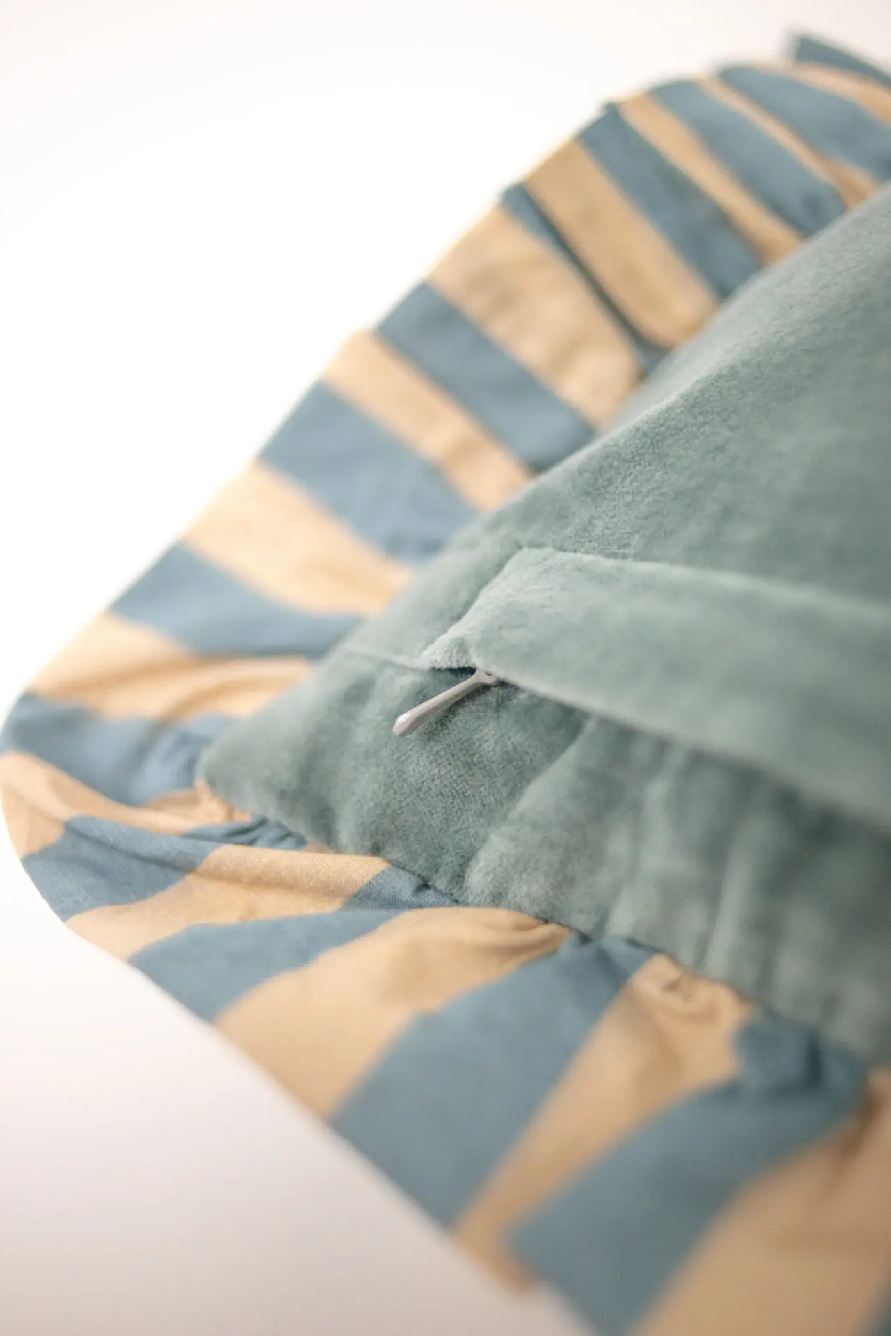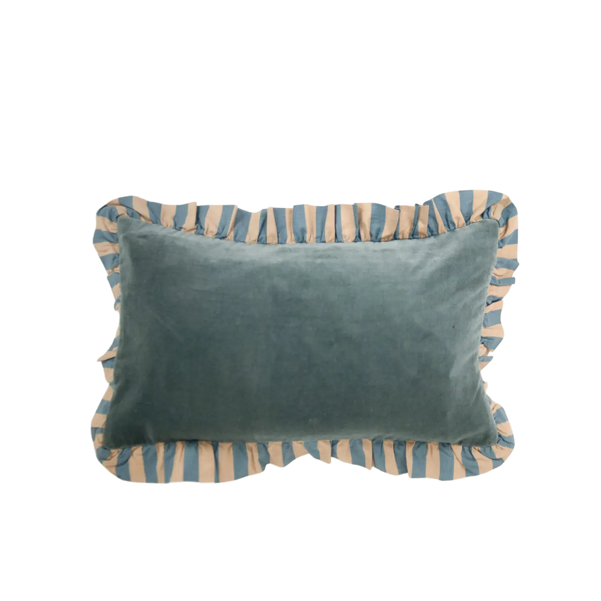 Kuddfodral i 100% bomull, med en charmig randig volang som ger en lekfull touch.