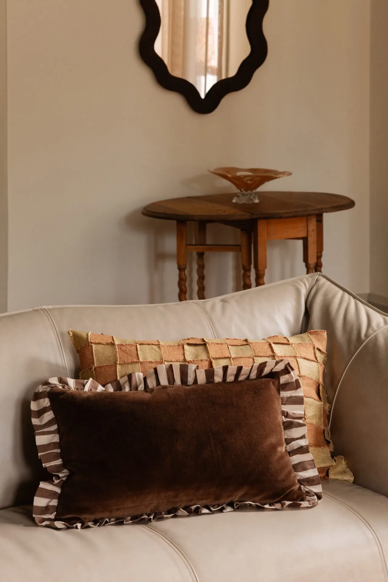 Kuddfodral i 100% bomull, med en charmig randig volang som ger en lekfull touch.