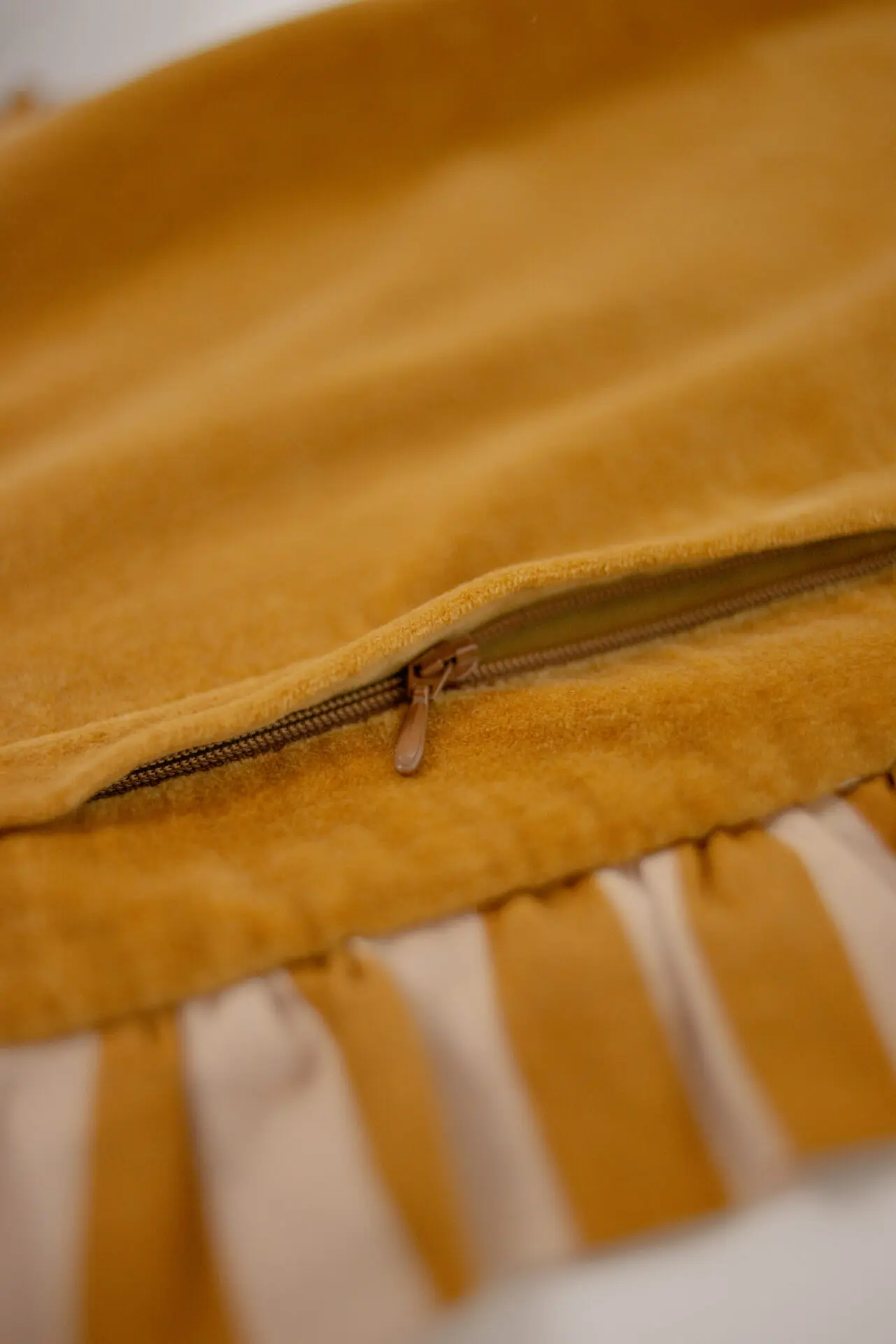Kuddfodral i 100% bomull, med en charmig randig volang som ger en lekfull touch.
