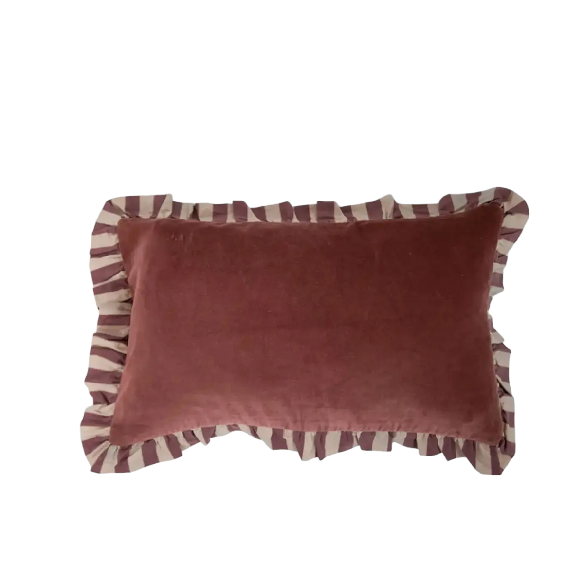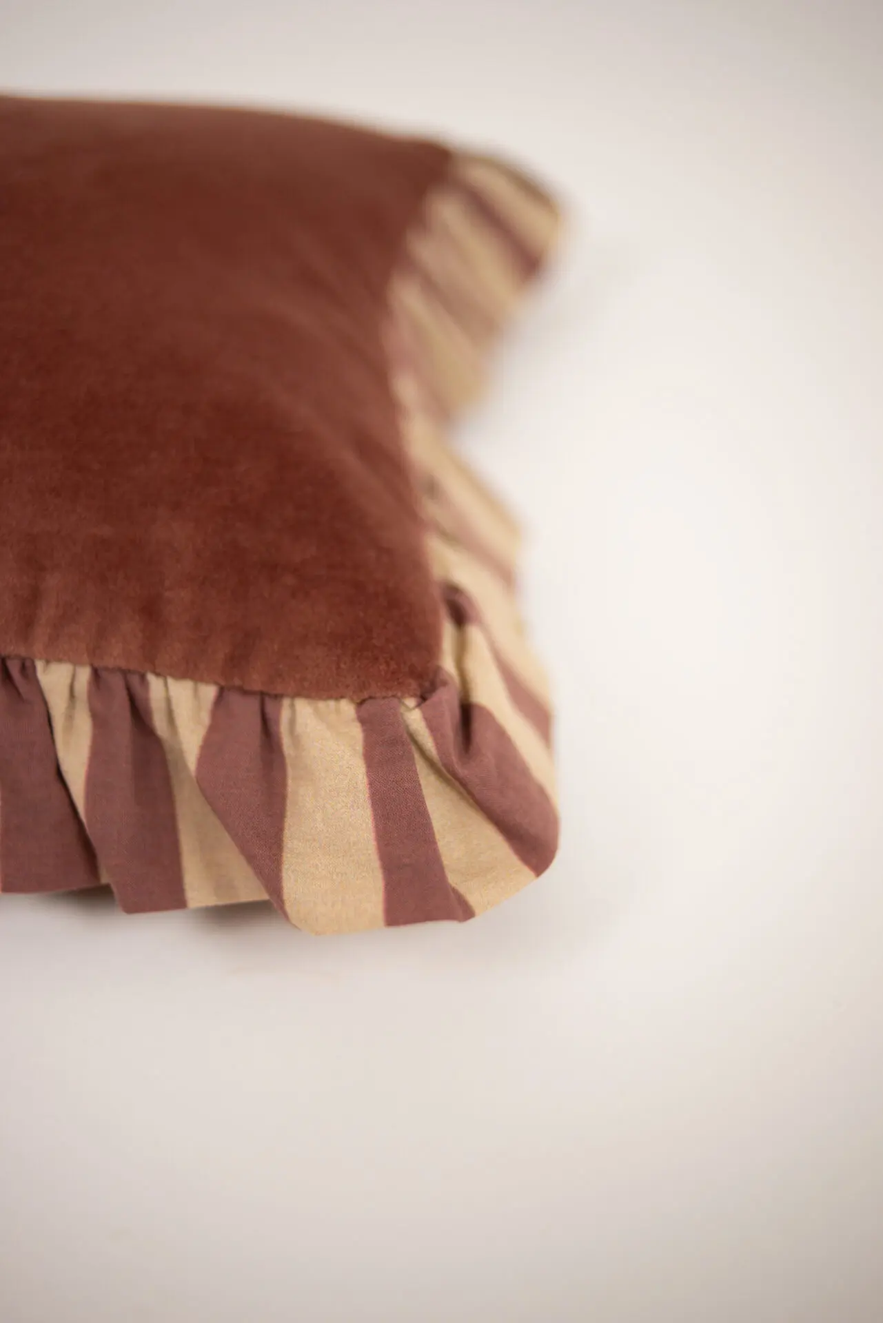 Kuddfodral i 100% bomull, med en charmig randig volang som ger en lekfull touch.