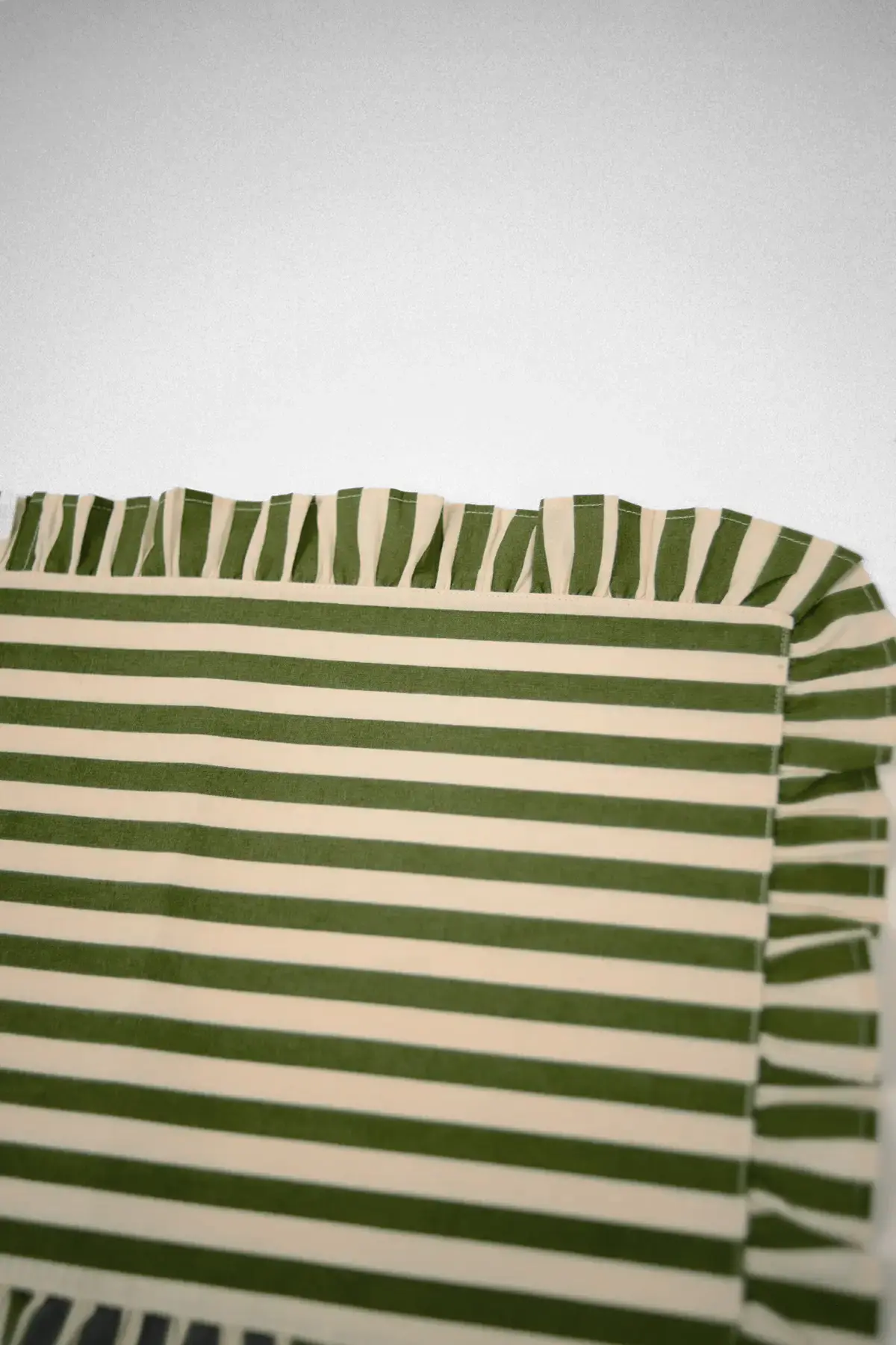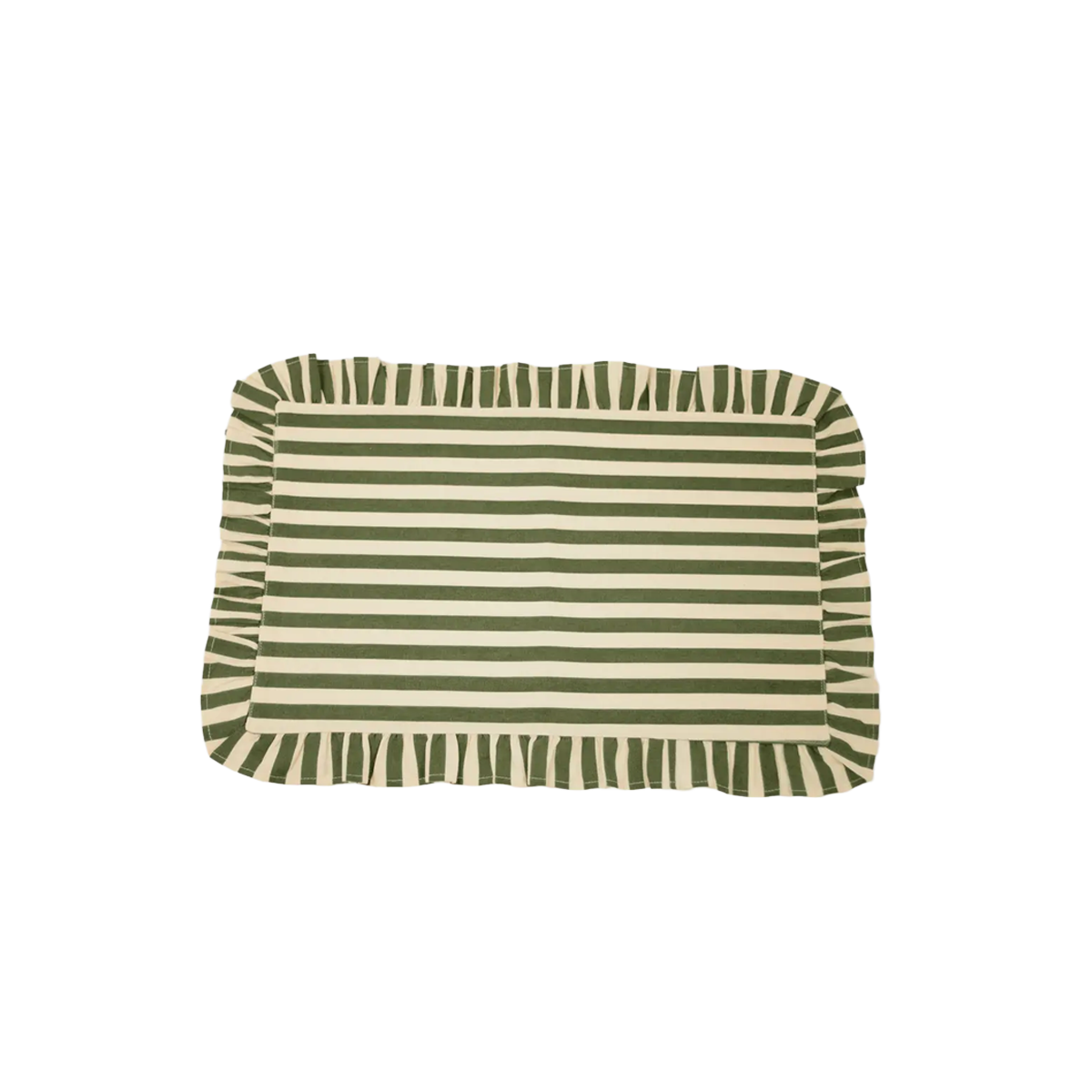 Randigt bordsunderlägg med dekorativ volangkant. En mix av romantik, cool elegans och ombonad känsla som lyfter varje dukning.