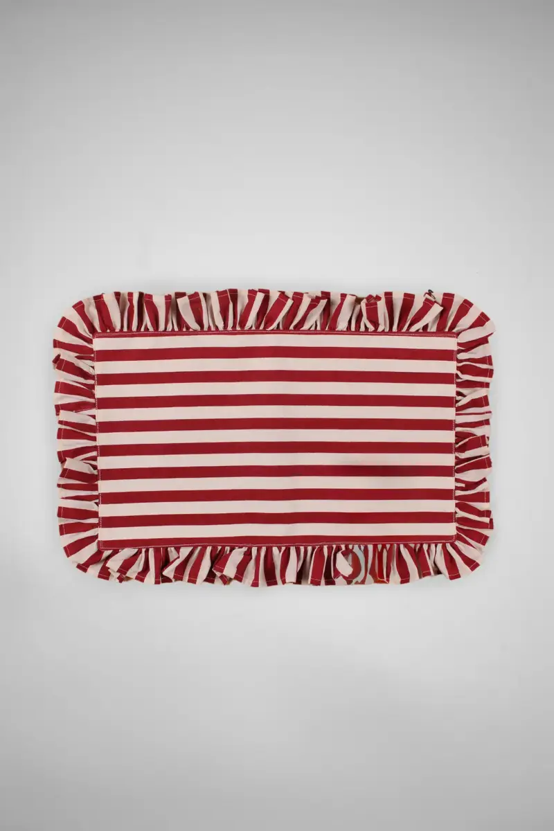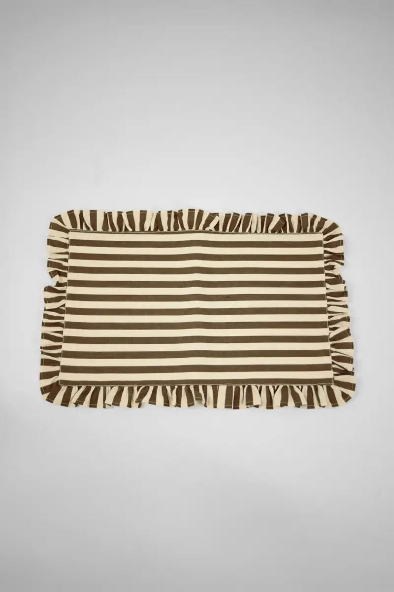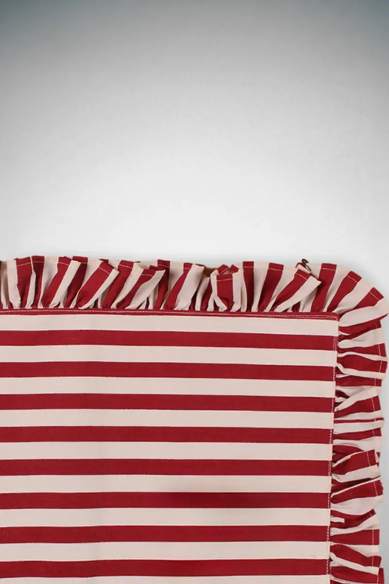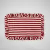 Randigt bordsunderlägg med dekorativ volangkant. En mix av romantik, cool elegans och ombonad känsla som lyfter varje dukning.