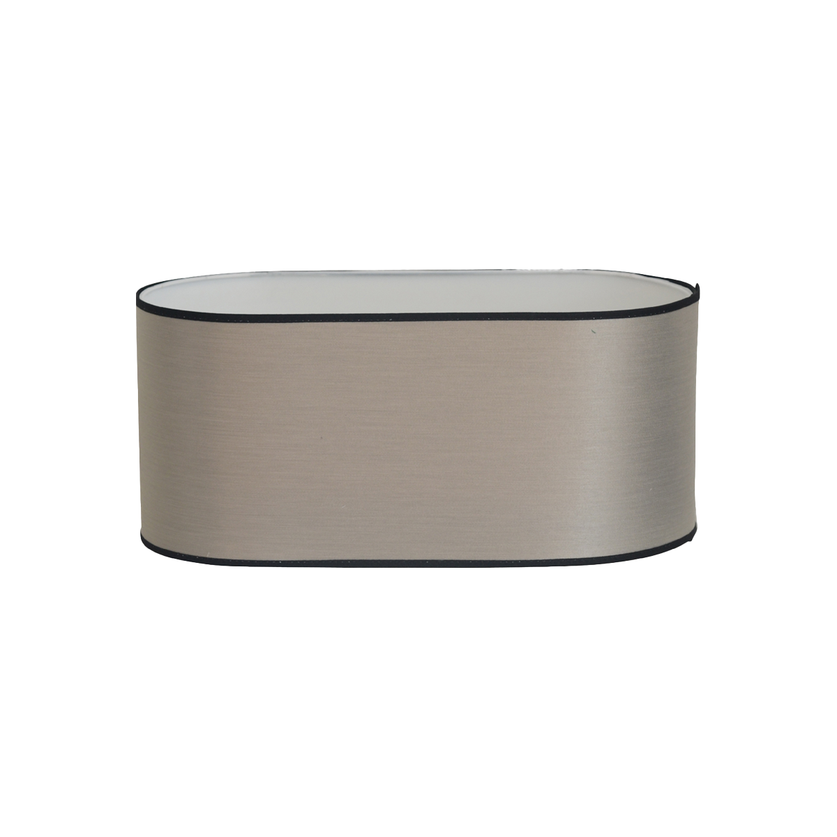 En avlång, trendig lampskärm med en oval form. I neutrala färger i textil, ger den ett stilrent och mjukt ljus, perfekt för minimalistiska miljöer.