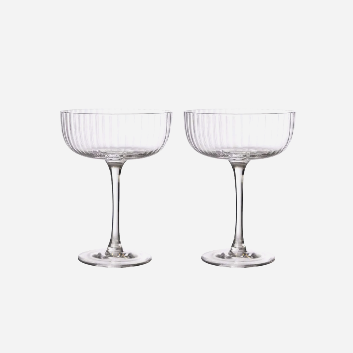 ERNST räfflade glas på fot ingår i en serie med flera olika glas för olika tillfällen. Servera bubbel, en god drink eller varför inte en dessert ur glasen. Fina och eleganta till middagsbjudningen.