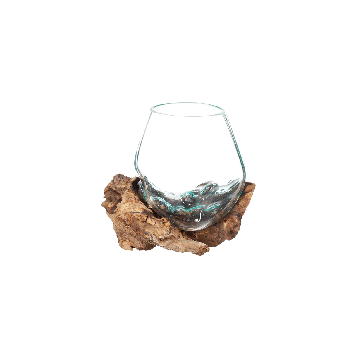 Handblåst glas som formats efter trädroten, varje exemplar är unikt.