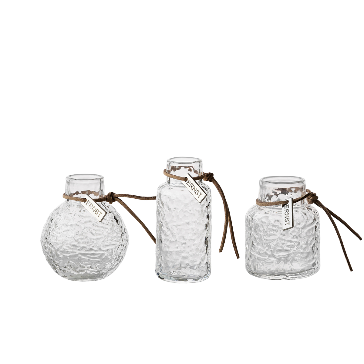 Tre små vaser med struktur i en presentförpackning, en gåva till den som uppskattar det lilla extra