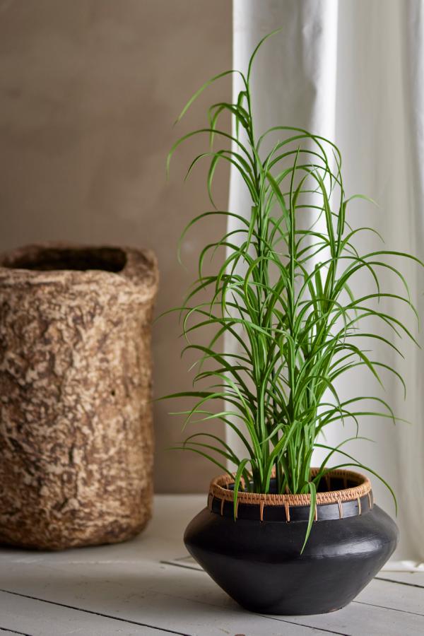 Ett underhållsfritt alternativ till levande grönska som omedelbart fräschar upp ditt hem. Denna konstgjorda gräsväxt ger rummet en känsla av lugn och natur. Växten levereras med en svart kruka, redo att placeras i en kruka eller korg som kompletterar både växtens karaktär och din inredning. Forma stjälkarna/grenarna före användning för att framhäva växtens naturliga utseende och anpassa den till din personliga inredning.