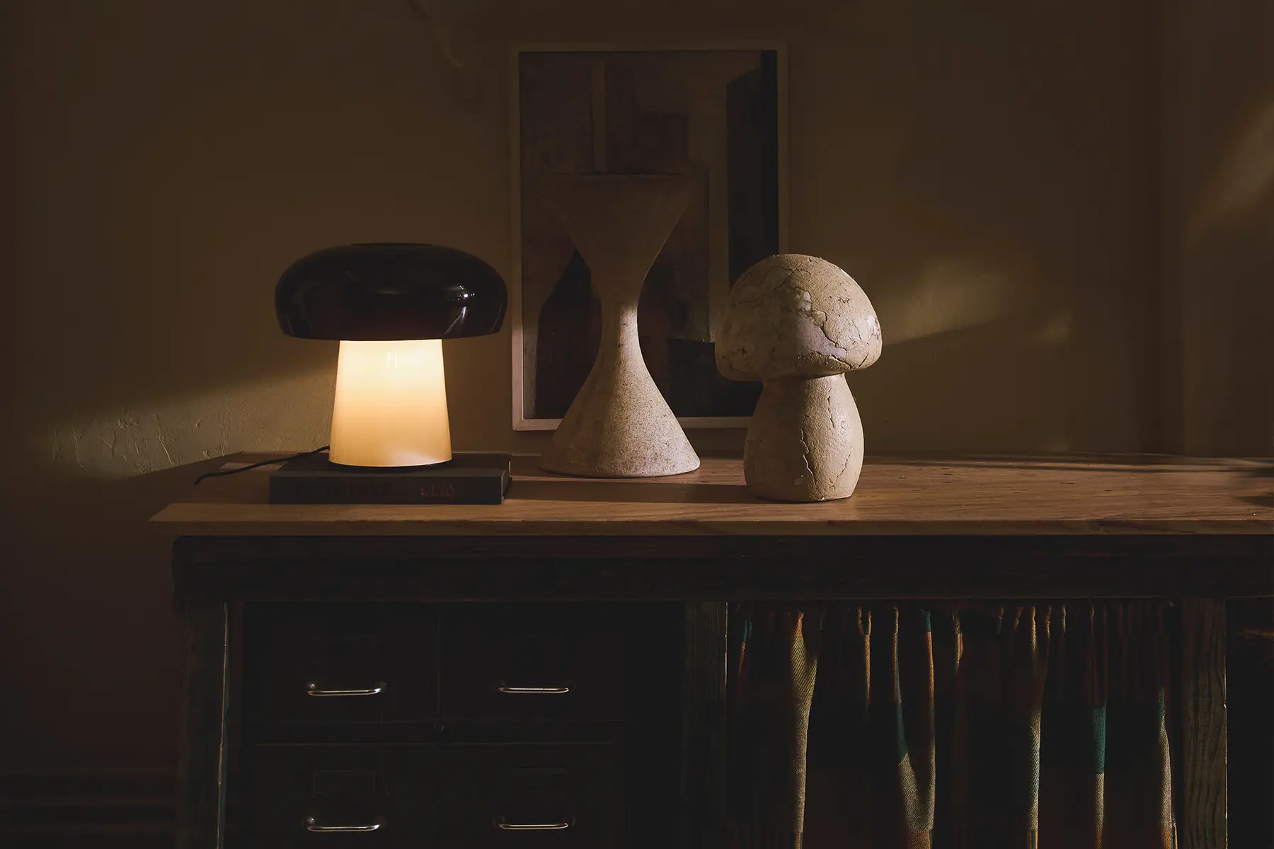 Hilding – den moderna bordslampan med en hint av retro. Lampan har en tvåfärgad design och sprider ett mjukt sken från foten.