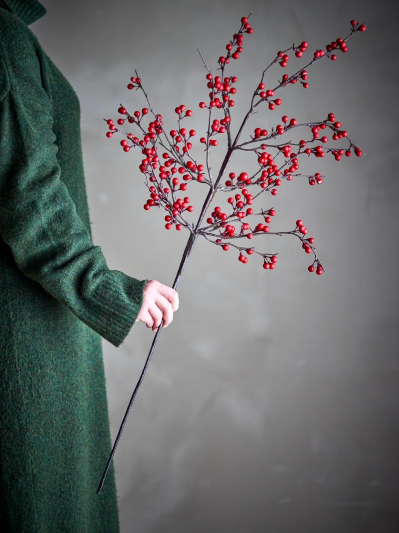 The Ilex Stem by Bloomingville is a beautiful, artificial branch with red berries that adds a colorful and natural touch to your Christmas decor. Ideal for placing in a vase alone or as part of a larger decorative bouquet, it is perfect for creating a cozy and festive atmosphere at home, without the need for maintenance.