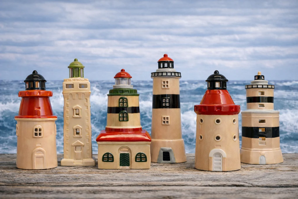 Trendiga Danska keramikhus för värmeljus.Falsterbo fyr ligger längst ut på Falsterbonäset i Skåne, ett område känt för sina förrädiska sandbankar och starka strömmar.Fyren har i över tvåhundra år varnat sjötrafiken för grunda vatten där otaliga fartyg tidigare gått under. Med sin klassiska röd-vita färgsättning är Falsterbo fyr ett av Skånes tydligaste landmärken.