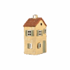 Gul&Beige med brunt tak. H 21cm, B 12cm, D 8cm