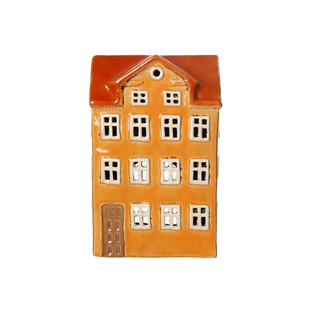 Trendiga Danska keramikhus för värmeljus, gulbrun.
