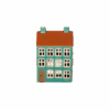 Turkos med brunt tak.