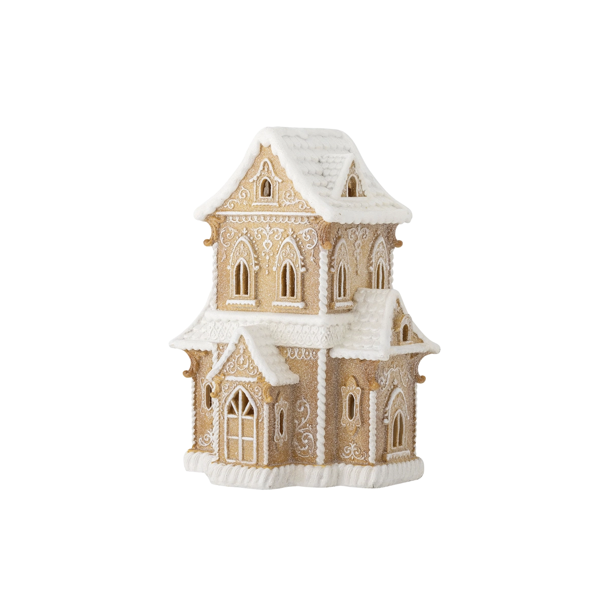 Kevin Deko w/Light från Bloomingville är ett förtrollande pepparkakshus gjord av polyresin, dekorerat med en mängd fina detaljer och silverskimmer som utstrålar julstämning. Det inbyggda LED-ljuset skapar en varm och inbjudande glöd som gör dekorationen till ett perfekt mittpunkt i juldekorationen. Ett stämningsfullt och charmigt element som tar med julens magi in i hemmet.