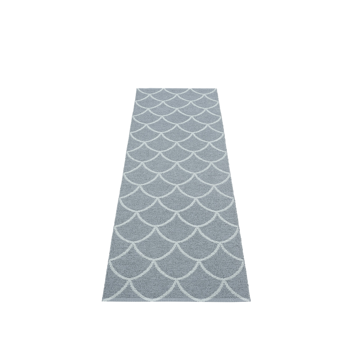 Förflytta dig till de fängslande landskapen i Dalarna, Sverige, med KOTTE, en matta inspirerad av naturens skönhet. I Dalarna, där Pappelina har sin bas, är de förtrollande skogarna och den naturliga omgivningen en integrerad del av vardagen. Det är från denna imponerande region som KOTTE hämtar sin inspiration. Namnet KOTTE var ett självklart val som namn eftersom designen är inspirerad av en tallkottens mönster och utformning. Denna matta fångar tallkottens skönhet och elegans, med sin form och struktur. Precis som en tallkotte som samlats in från skogen, för KOTTE in en touch av naturens underverk i ditt hem. Låt dess mjuka kurvor och harmoniska mönster skapa en atmosfär av lugn och frid. KOTTE är inte bara en matta – den speglar en djup koppling till den magiska världen i skogen, en påminnelse om de fantastiska former och underverk som återfinns i naturen. Enkel att sköta och tvätta genom att endast använda vatten. Tål maskintvätt. Pappelina plastmatta KOTTE Storm.