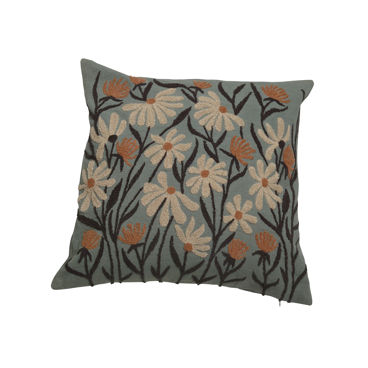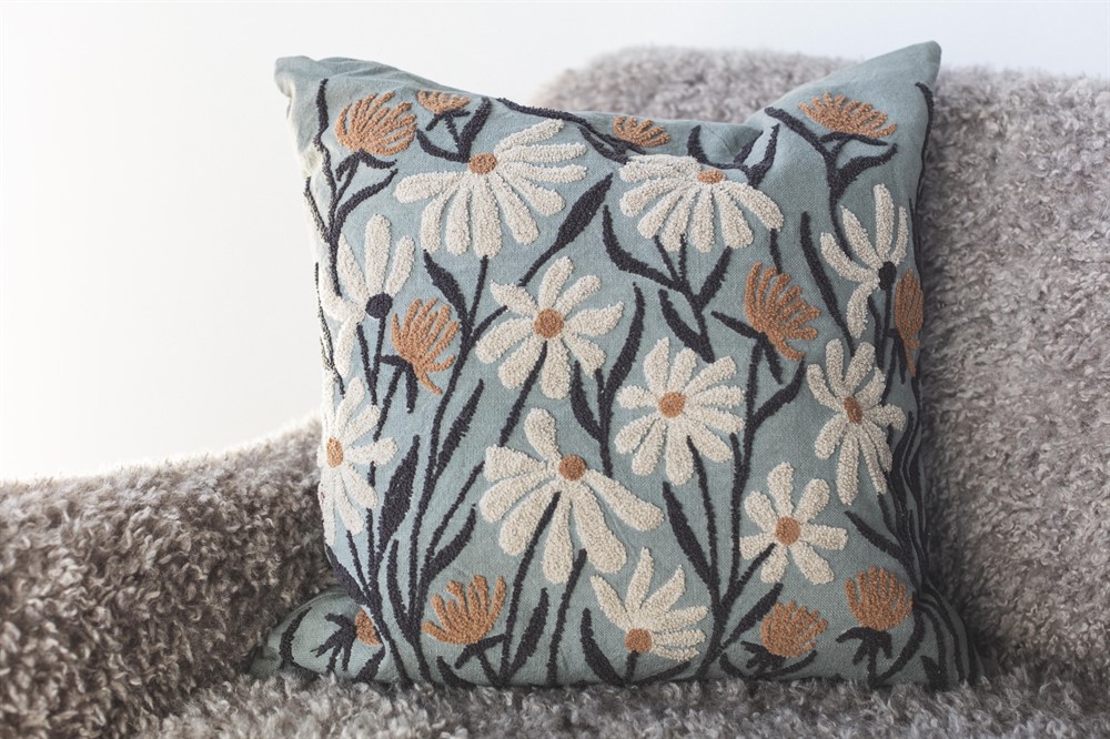Vackert kuddfodral med ett broderat blommigt mönster. Kuddfodralet ger en fin touch till soffan eller fåtöljen.