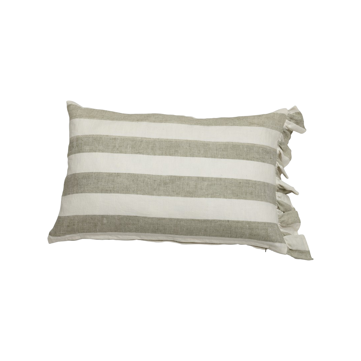Dekorera ditt hem med denna underbara randiga kuddfodralen i en linnemix med dekorativ volang på ena kortsidan.