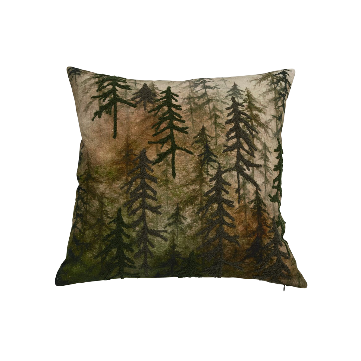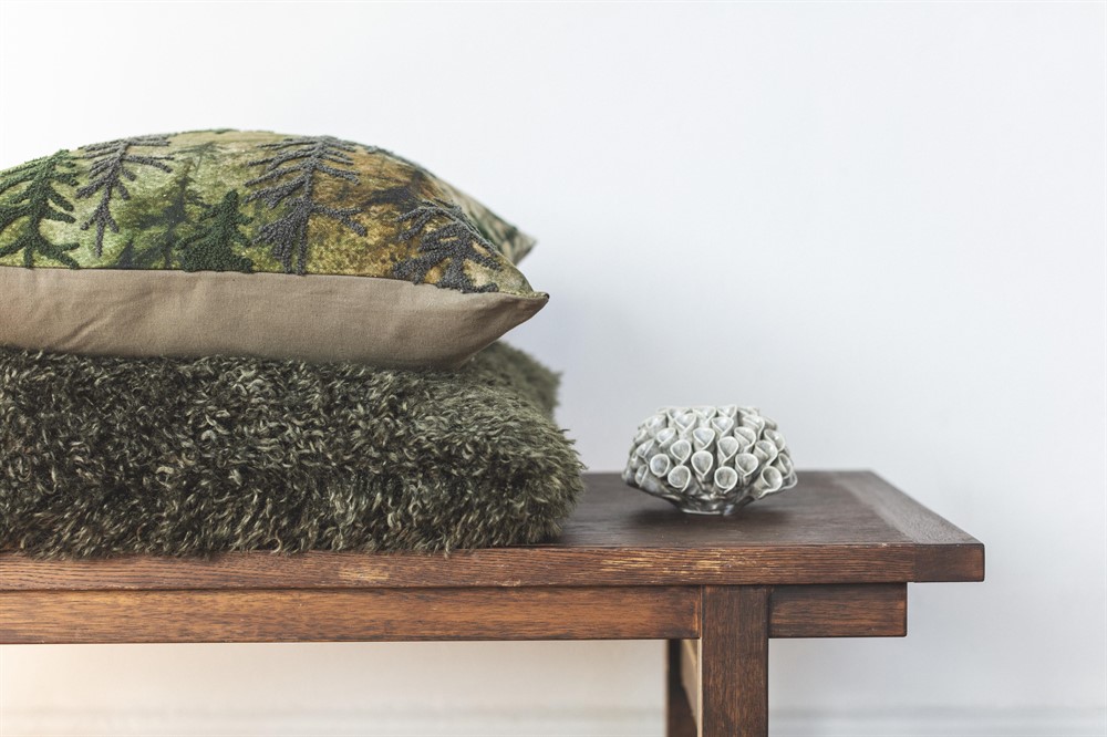 Harmoniskt kuddfodral med ett skogstema som är både tryckt och broderat. En fin detalj i din soffa.