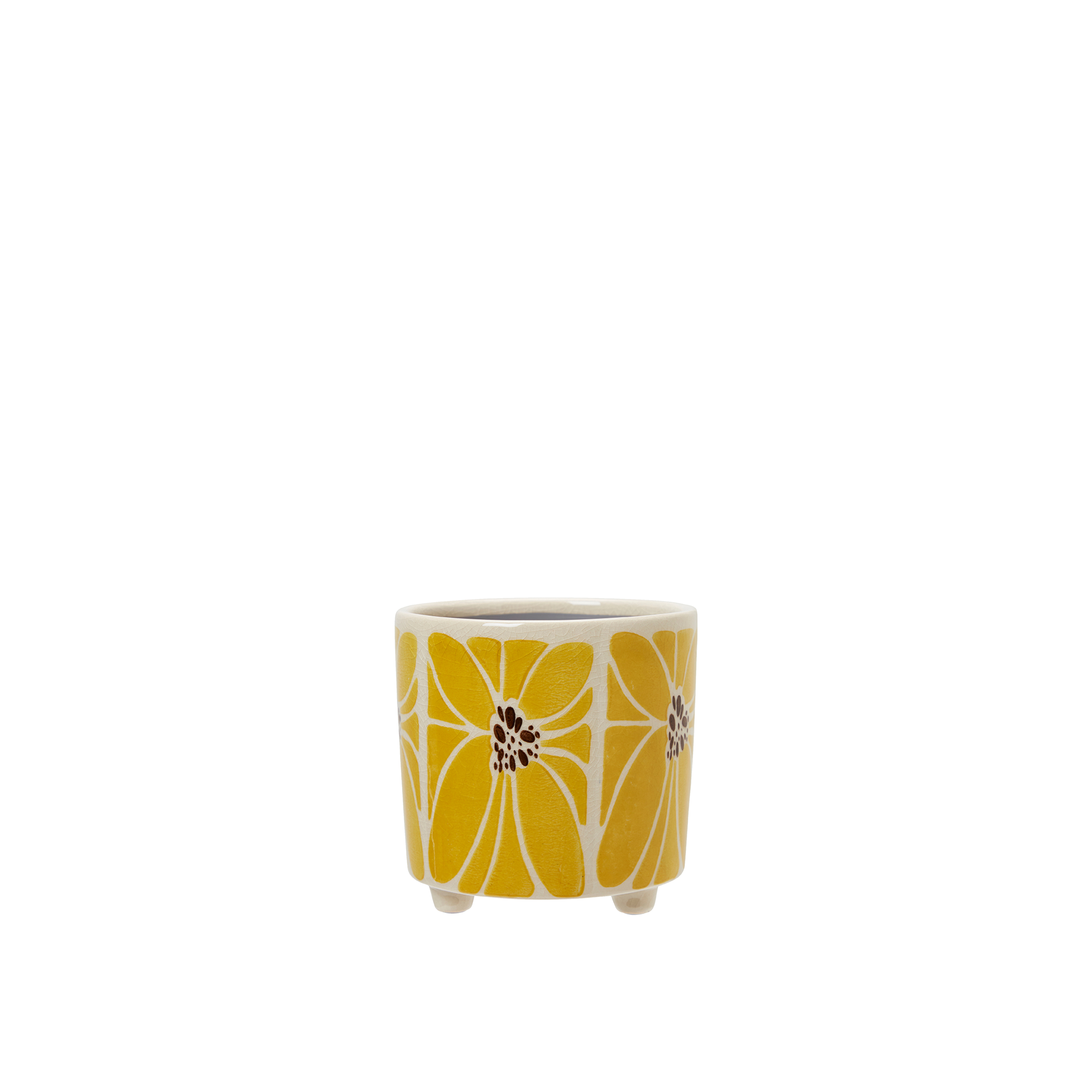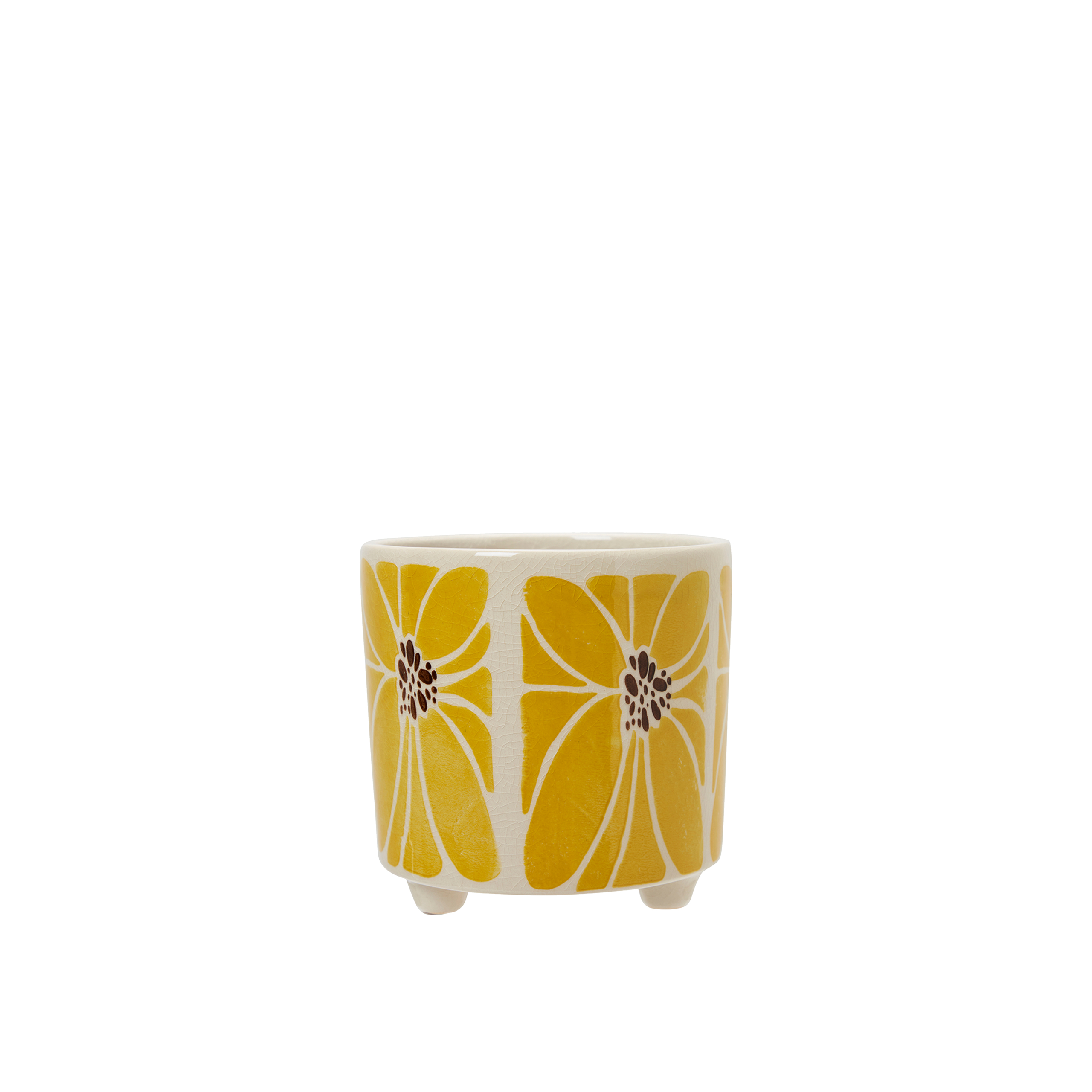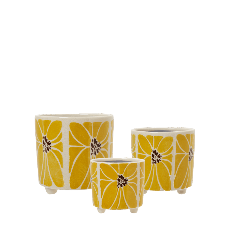 Krukan Lara i vit och gul stengods tillför en stilren och naturlig känsla i ditt hem – perfekt för växter eller som en dekorativ detalj på bordet. Med sin tåliga yta och harmoniska färgkombination blir den både praktisk och smakfull, ett utmärkt val för den inredningsintresserade.