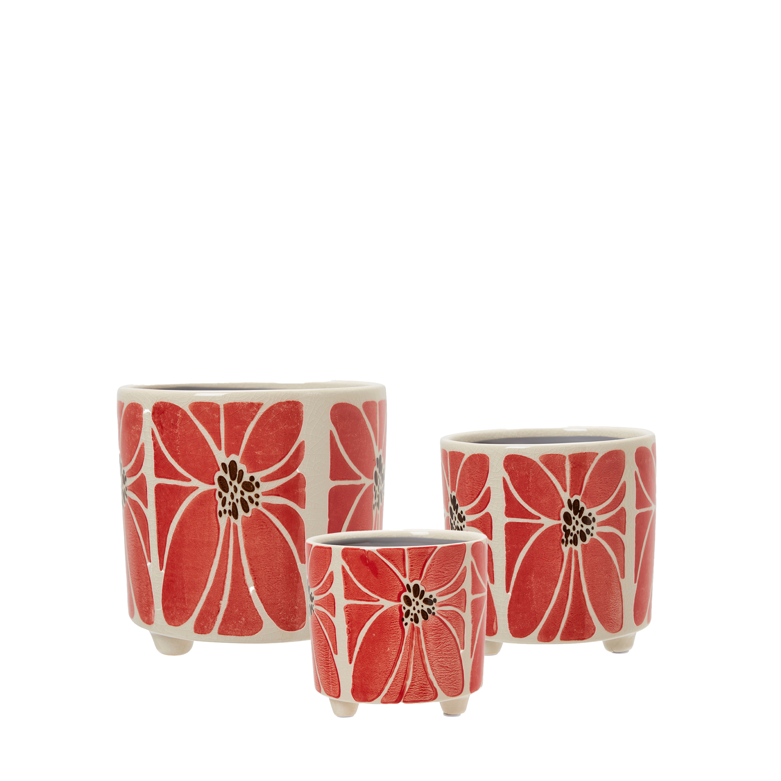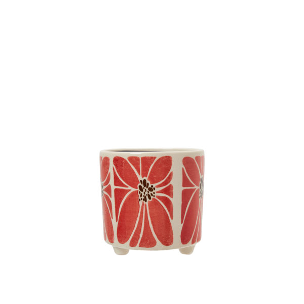 Krukan Lara i vit och röd stengods tillför en stilren och naturlig känsla i ditt hem – perfekt för växter eller som en dekorativ detalj på bordet. Med sin tåliga yta och harmoniska färgkombination blir den både praktisk och smakfull, ett utmärkt val för den inredningsintresserade.