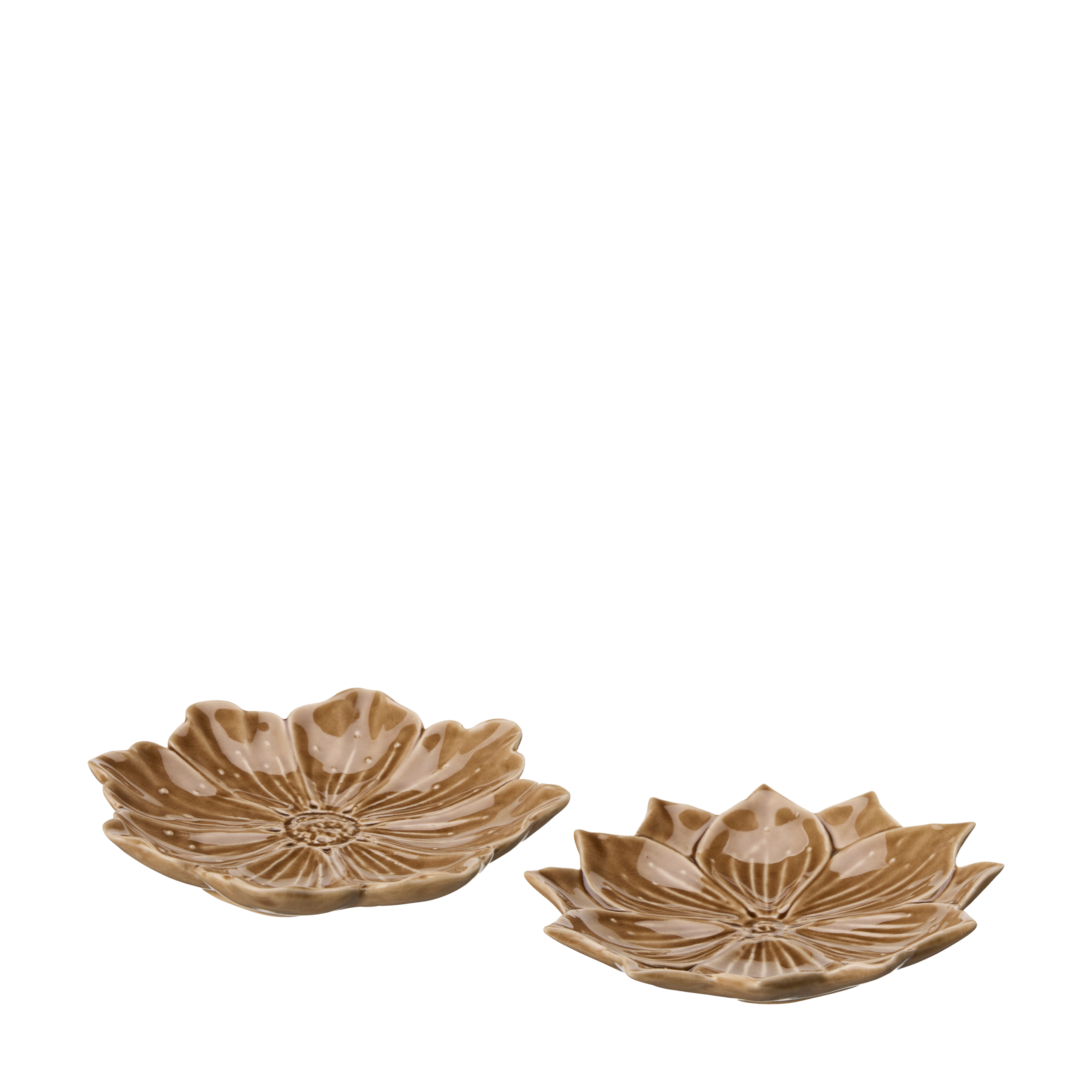 Dekorativt fat i form av en brunmelerad blomma