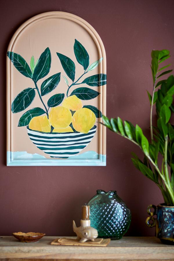 Limone Illustration med ram från Creative Collection är en dekorativ väggdekoration i MDF med ett citronmotiv i varma gula toner. Den böjda formen och den integrerade ramen ger den ett harmoniskt uttryck och gör den till en fin detalj i inredningen.