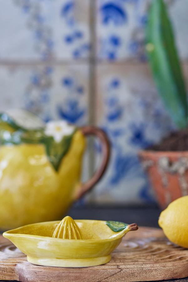 Limone-citruspressen från Creative Collection fångar den fräscha essensen av citrusfrukter. Formad som en citron, med citron-gul färg och skalliknande textur, tillför den både lekfull charm och funktionalitet till köket. Färsk och redo att pressa saften ur din favoritcitrusfrukt. Ett glatt och funktionellt tillskott i köket.