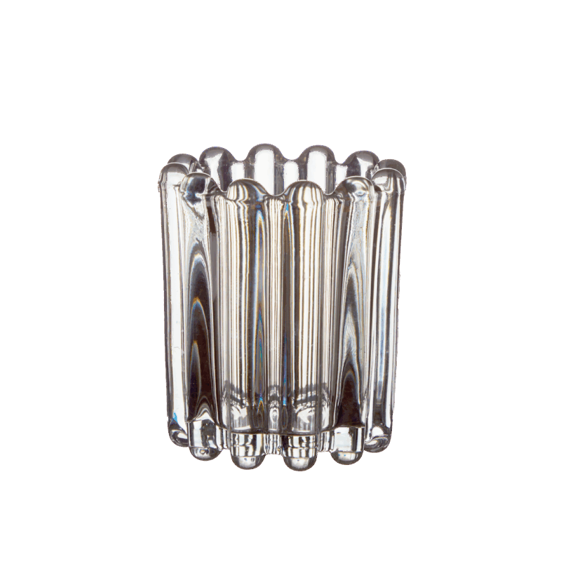 En ljuslykta där ljuset glittrar underbart i det vågiga glaset. Står sig genom alla årstider och är fin som den är eller i grupp med andra, tex