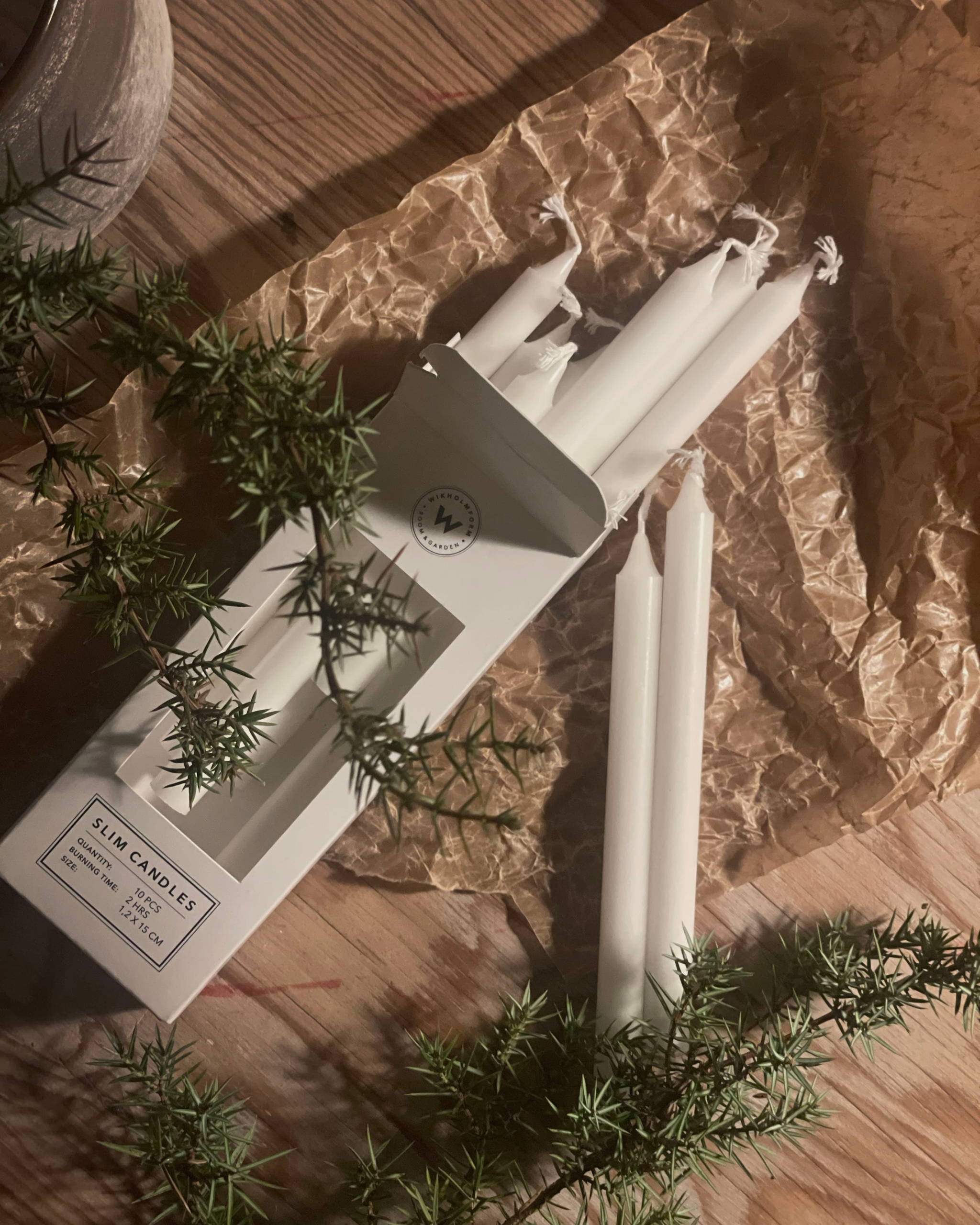 Ljusen 12 mm ger ett elegant, smalt sken och passar utmärkt både till festliga dukningar eller vardagliga middagar. De rena linjerna och mångsidiga designen gör dem till en stilfull detalj som förhöjer atmosfären i varje rum.