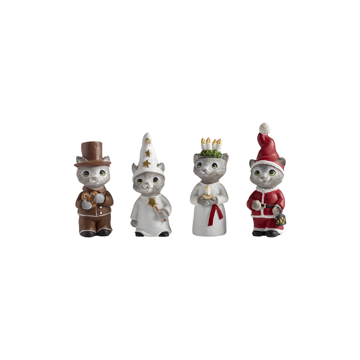 Morris, Simba, Elsa och Nisse känner pirret i magen. De har tränat flitigt inför Luciadagen den 13 december. Denna speciella dag kommer att fylla våra hjärtan med musik, värme och fina minnen. Luciatåget är handmålat, vilket gör varje katt unik.