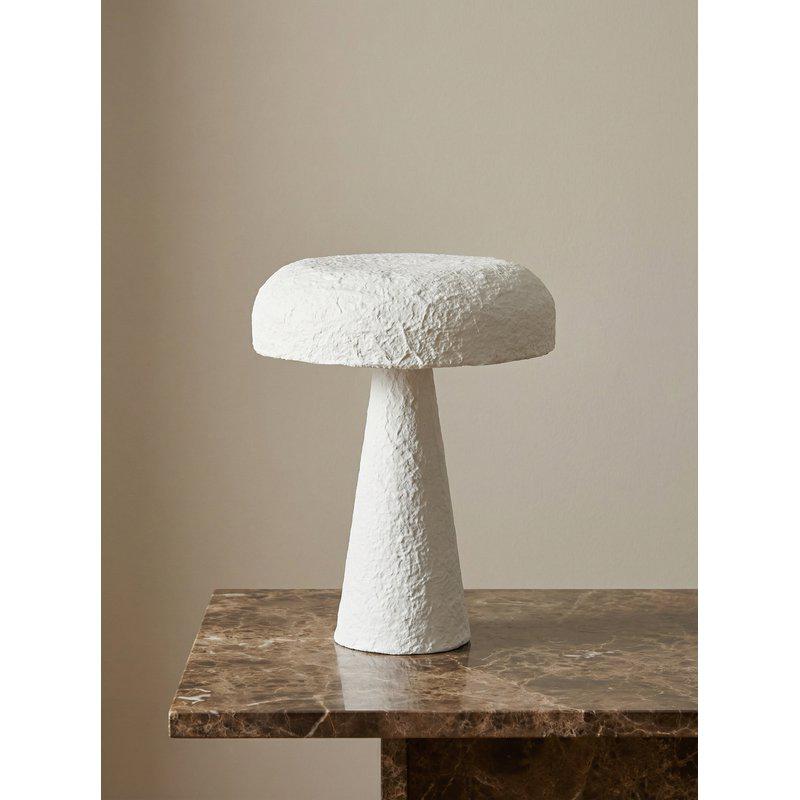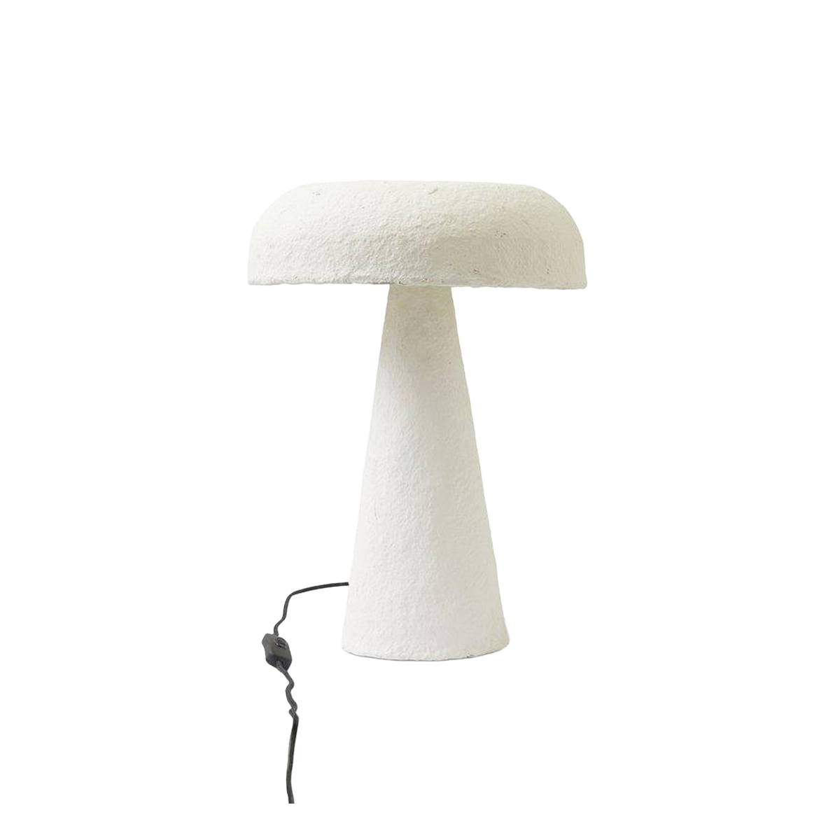 Låt ditt hem lysa upp med personlighet! Luma är en charmig bordslampa formad som en stilren svamp – skapad i handgjord papier-maché som ger varje exemplar en egen karaktär. Den matta, mjuka ytan sprider ett varmt och behagligt sken, perfekt för att skapa mysig stämning i vardagsrummet, på nattduksbordet eller i hallen. Med sin skulpturala form blir Luma lika mycket konstverk som ljuskälla – en vacker liten detalj som gör stor skillnad i rummet.