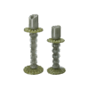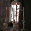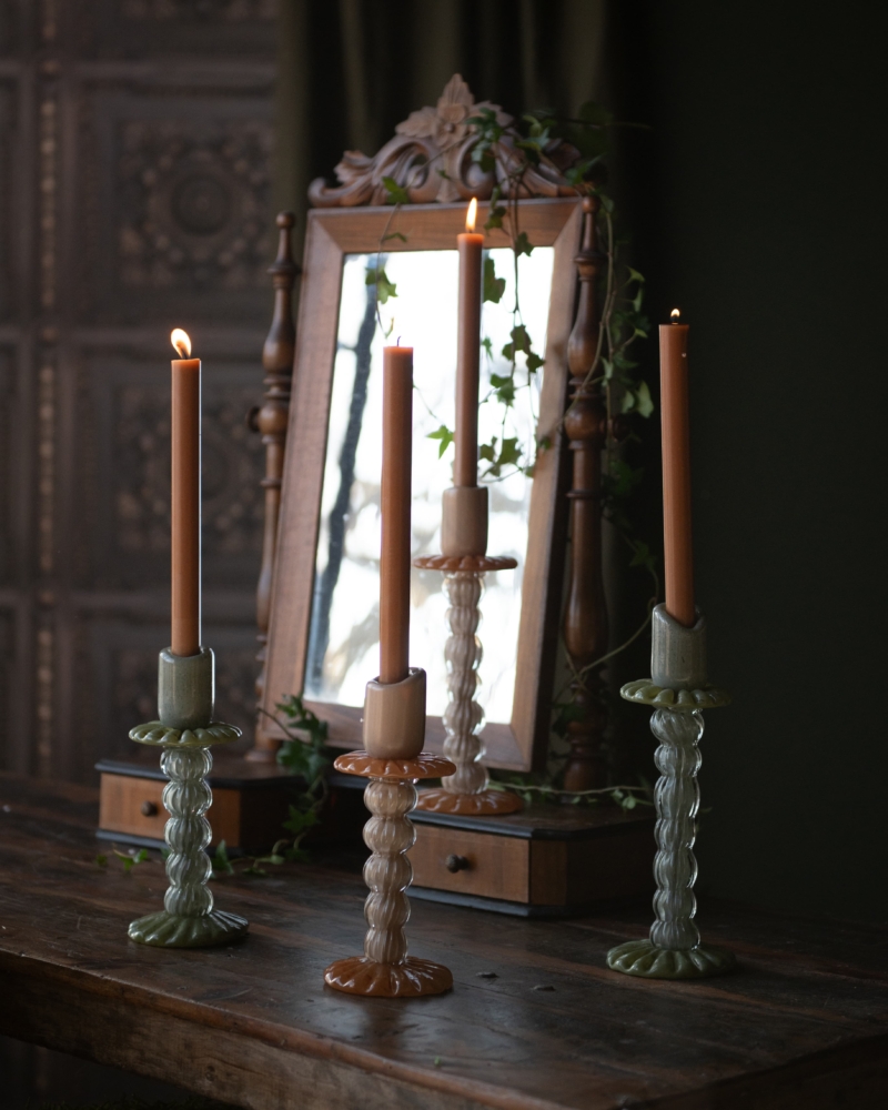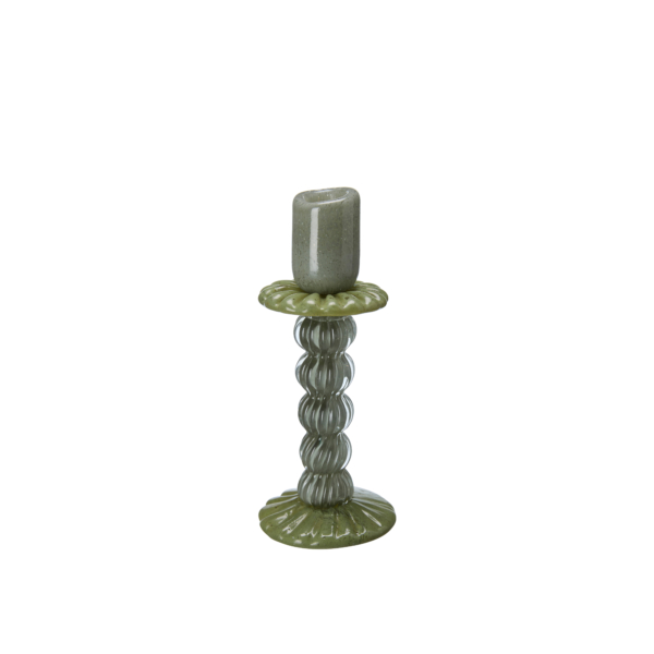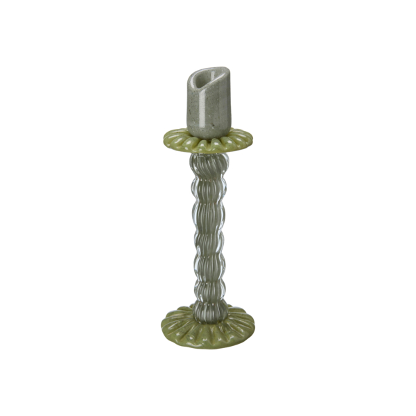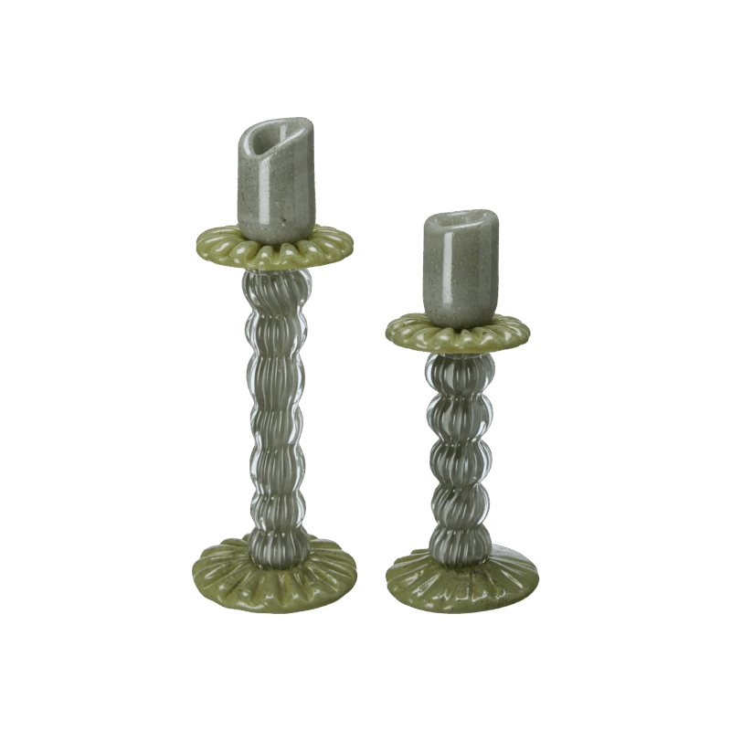 Malina är ett par stilrena ljusstakar i vackert gröntonat glas. Deras mjuka, böljande former och transparenta glans ger ett elegant och luftigt uttryck – perfekta för att skapa en harmonisk stämning i hemmet.