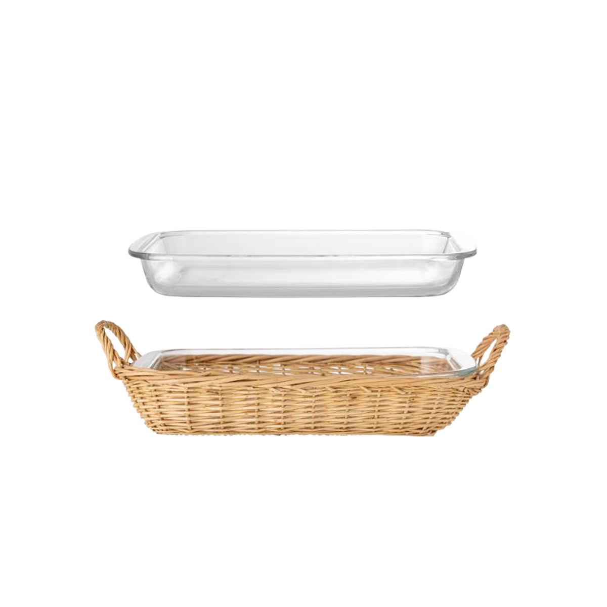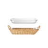 Mariam ugnsform med korg är en ugnssäker serveringsform i glas, perfekt för matlagning och servering av läckra rätter. Formen är också utrustad med en vacker korg gjord av pil, vilket ger en naturlig och rustik touch till ditt bord.