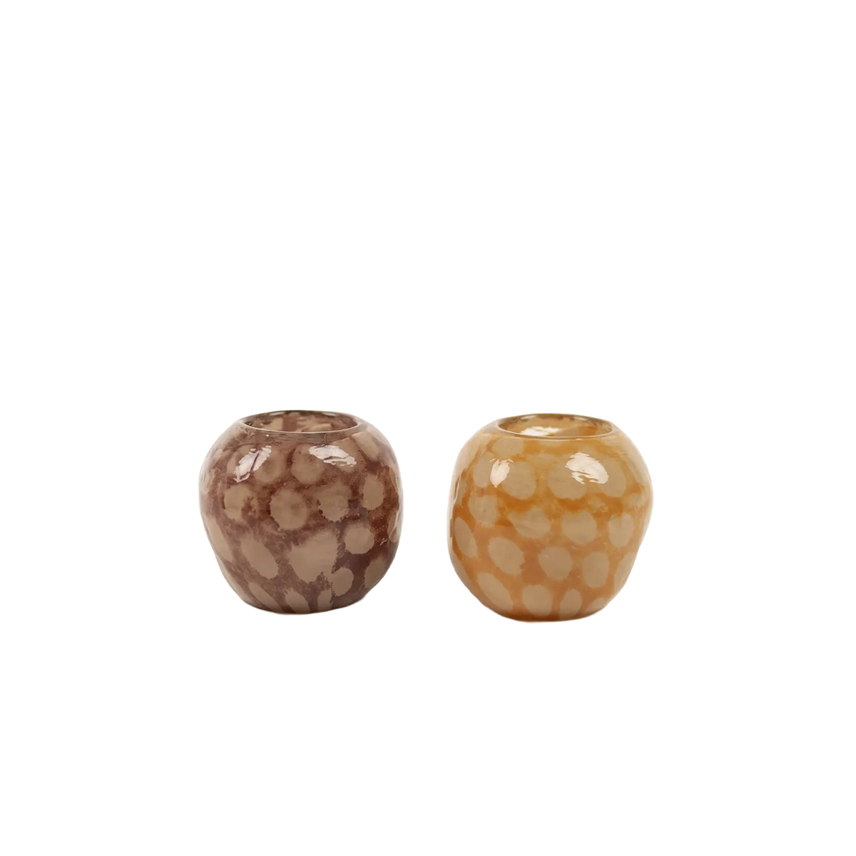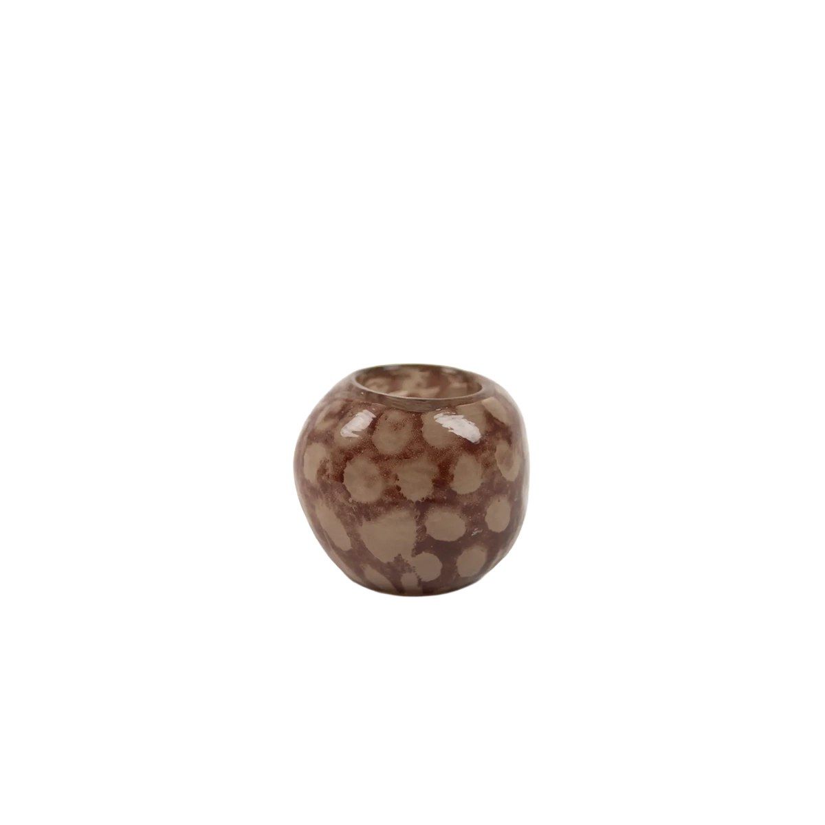Rundad ljuslykta med en charmig prickig design. Passar bäst i kombination med 4-timmars värmeljus.