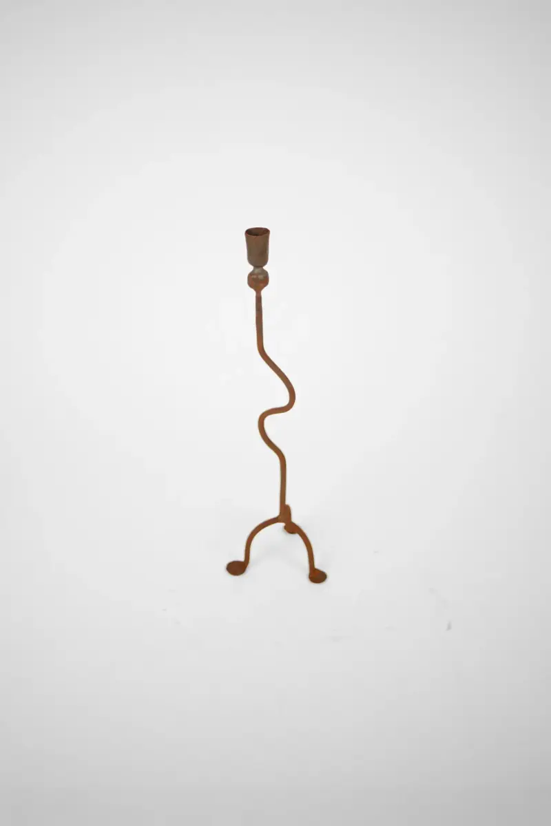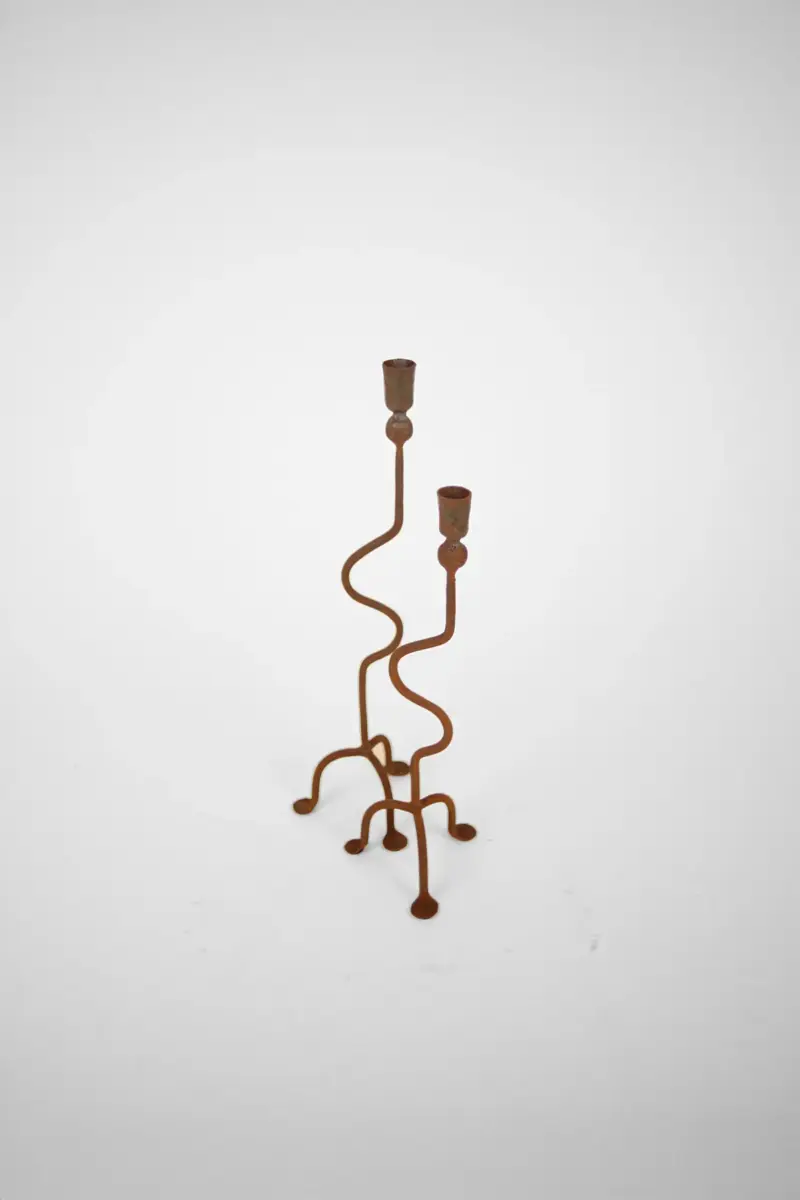 Charmigt svängd ljusstake i järn. Den lekfulla silhuetten och rustika finishen ger ett elegant uttryck med en twist.
