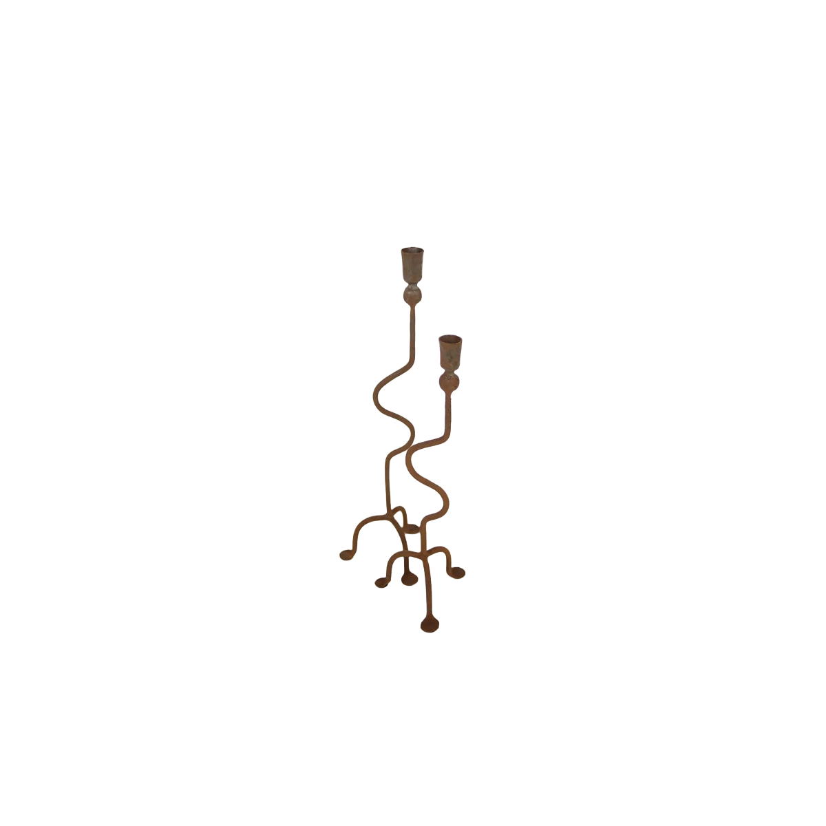 Charmigt svängd ljusstake i järn. Den lekfulla silhuetten och rustika finishen ger ett elegant uttryck med en twist.