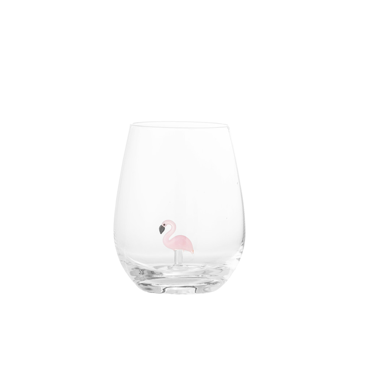 Misa glas ger en lekfull och unik touch till din dukning. I botten av glaset finns en flamingo figur som tillför en festlig och dekorativ detalj till designen. Varje glas har munblåsta och handgjorda detaljer, vilket säkerställer att varje del är unik och kan skiljas åt. Tål ej diskmaskin och ingen is är rekommenderad att ha i för att skydda figuren.
